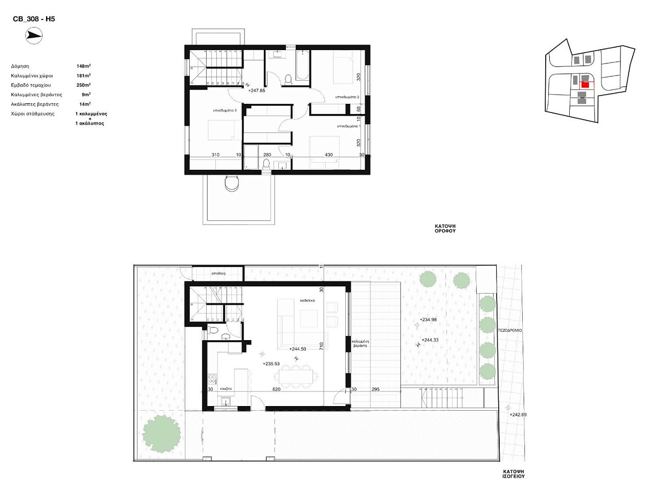 Modern house complex in Palodeia, Limassol. The residences have two levels and are designed with maximum comfort in mind. High-quality materials, ceramics and plumbing are used in the construction. There are 2 parking spaces for cars.