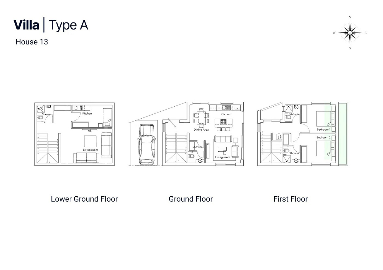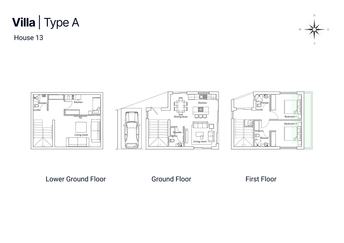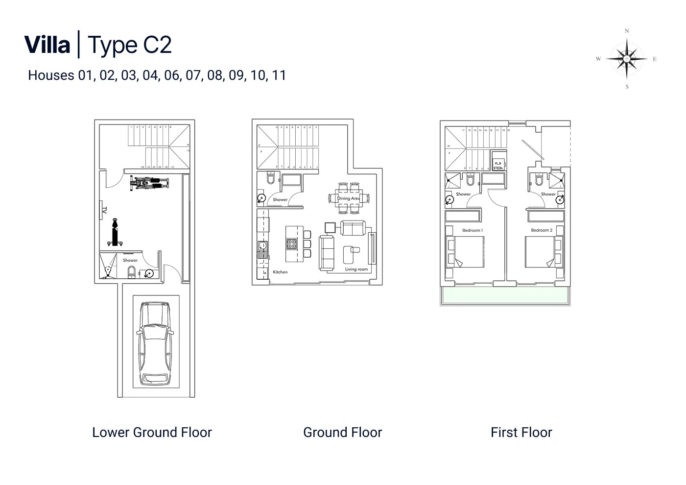 The project provides for an open plan kitchen and living room. A smooth transition between indoor and outdoor spaces, connecting residential areas directly with the natural landscape. High-quality eco-friendly materials and improved sound insulation are used.The villas are built for those who appreciate simplicity, elegance and peace.
