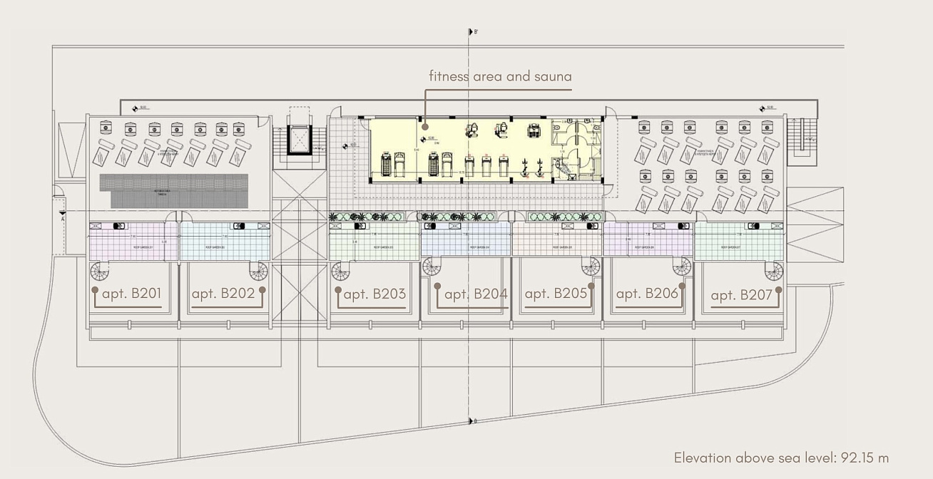 private garden and veranda. Photovoltaic systems for each apartment and for common areas. Residents will appreciate the proximity to numerous infrastructure facilities such as cafes and restaurants, shops, schools, banks and supermarkets.