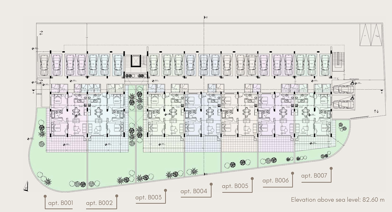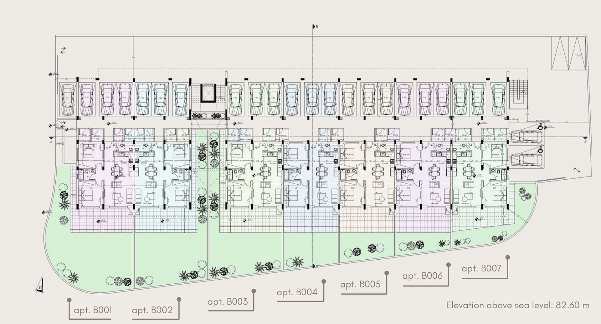 Romana Residences is a gated residential complex in Erimi district, Limassol, consisting of 44 luxury apartments with 2-3 bedrooms, located in two modern buildings: Building A (23 apartments) and Building B (21 apartments). The project features modern, comfortable layouts, a well-thought-out master plan, spacious verandas, dedicated storage rooms, a communal pool and fitness area, professional landscaping, a guarded entrance and dedicated parking spaces. The apartments on the top floor of Building B have an exclusive private rooftop garden with barbecue area. Each apartment on the ground floor has