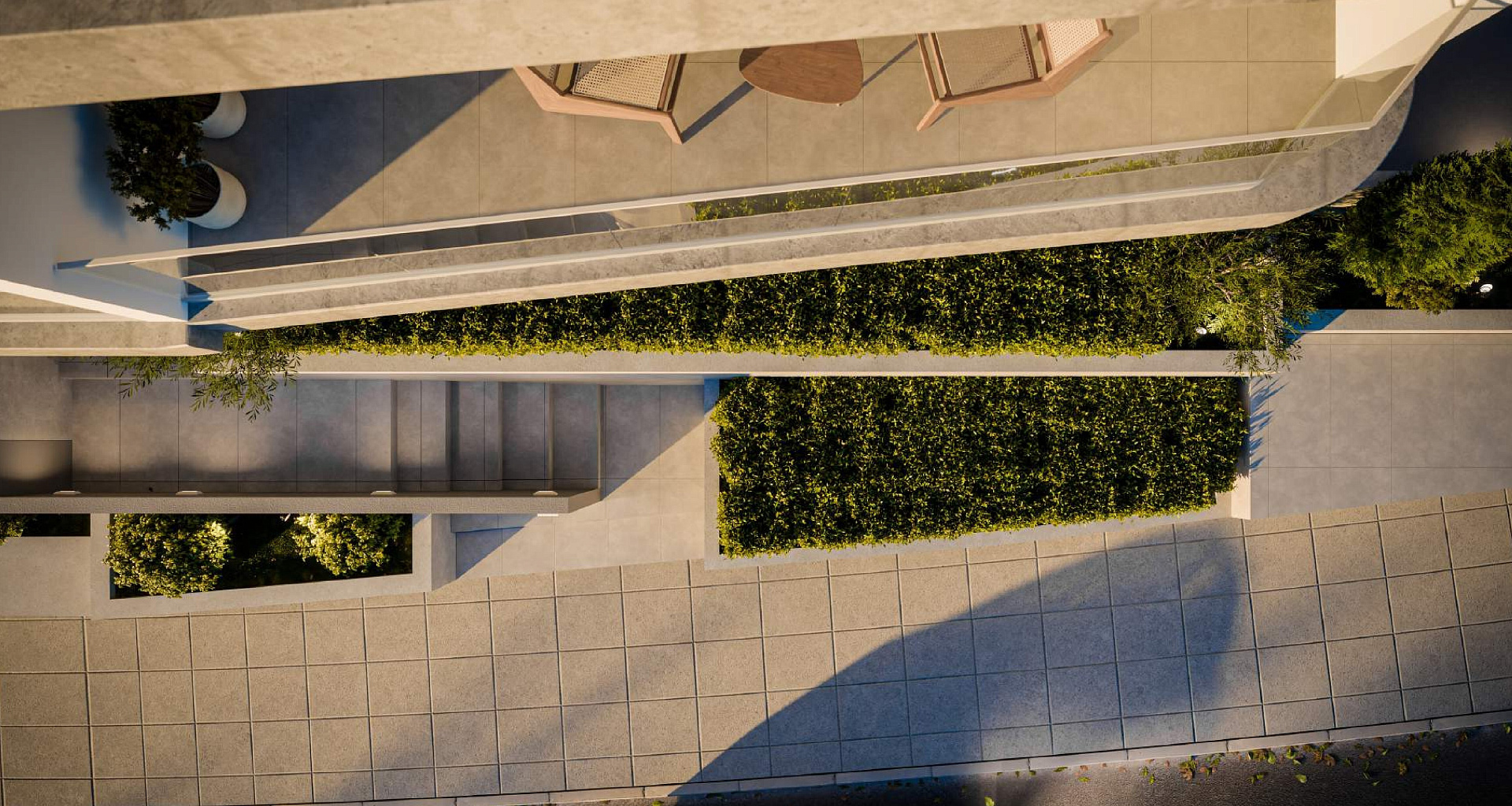 The residential complex is equipped with modern engineering solutions: complete air conditioning systems for cooling and heating, solar systems for water heating, as well as individual photovoltaic (PV) panels with a net metering system for each apartment.