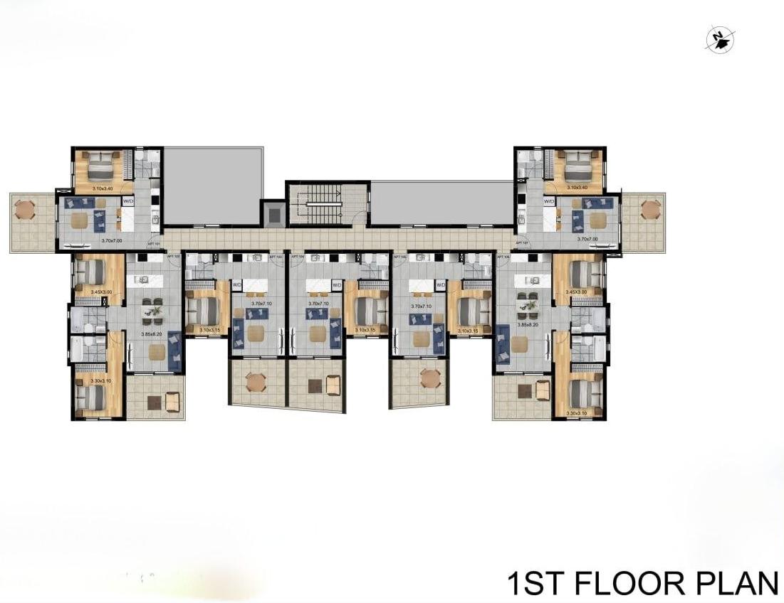 Residential complex in Germasogeia, Limassol. The project consists of 21 apartments with 1 and 2 bedrooms. The complex has a swimming pool and a gym. The apartments have functional layouts and large covered balconies. Each apartment has a covered parking and a storage room.
