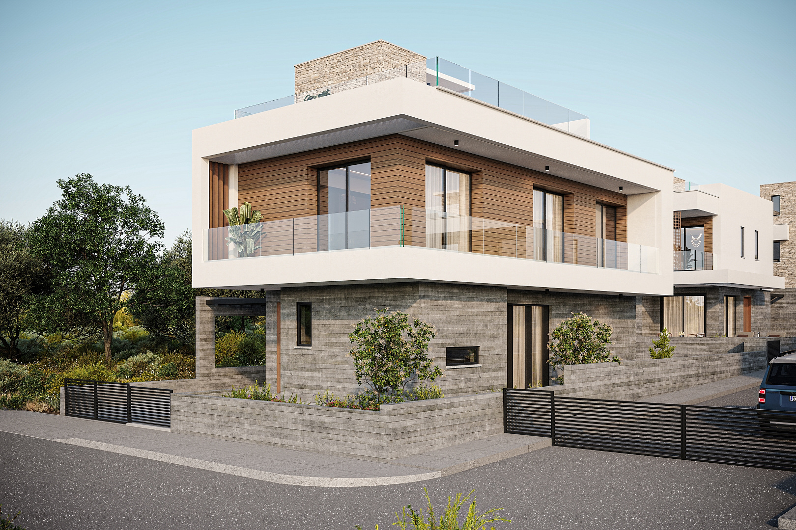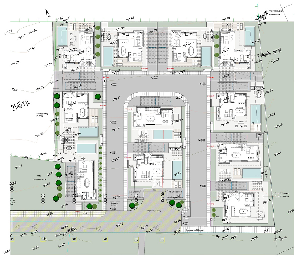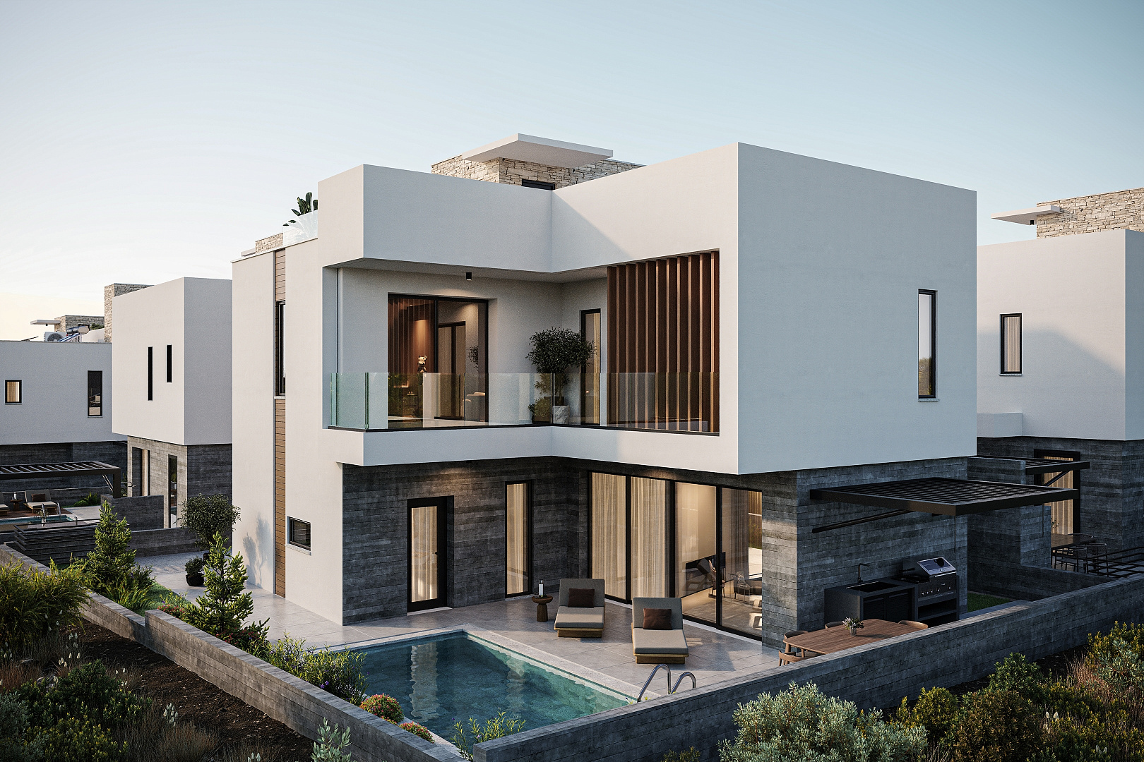 The complex includes modern 3 and 4 bedroom villas, designed with an emphasis on comfort, functionality and modern design. Each house is equipped with a private roof garden, creating an ideal space to relax and enjoy the panoramic views.