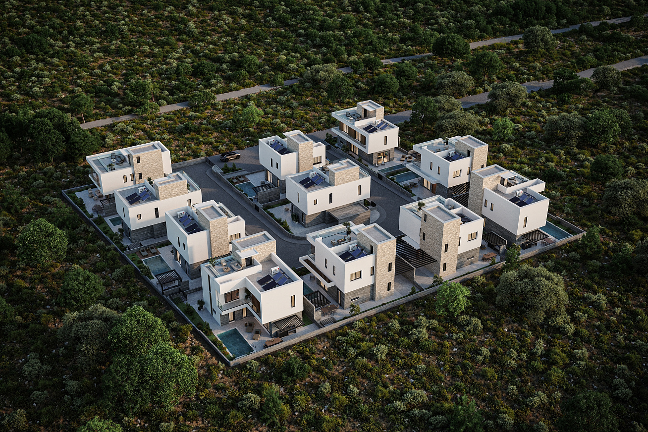 The new residential villa complex is located in Ayia Marinouda, Paphos and is an excellent option for a comfortable stay or a profitable investment. The project is located in a prestigious location with stunning sea views.