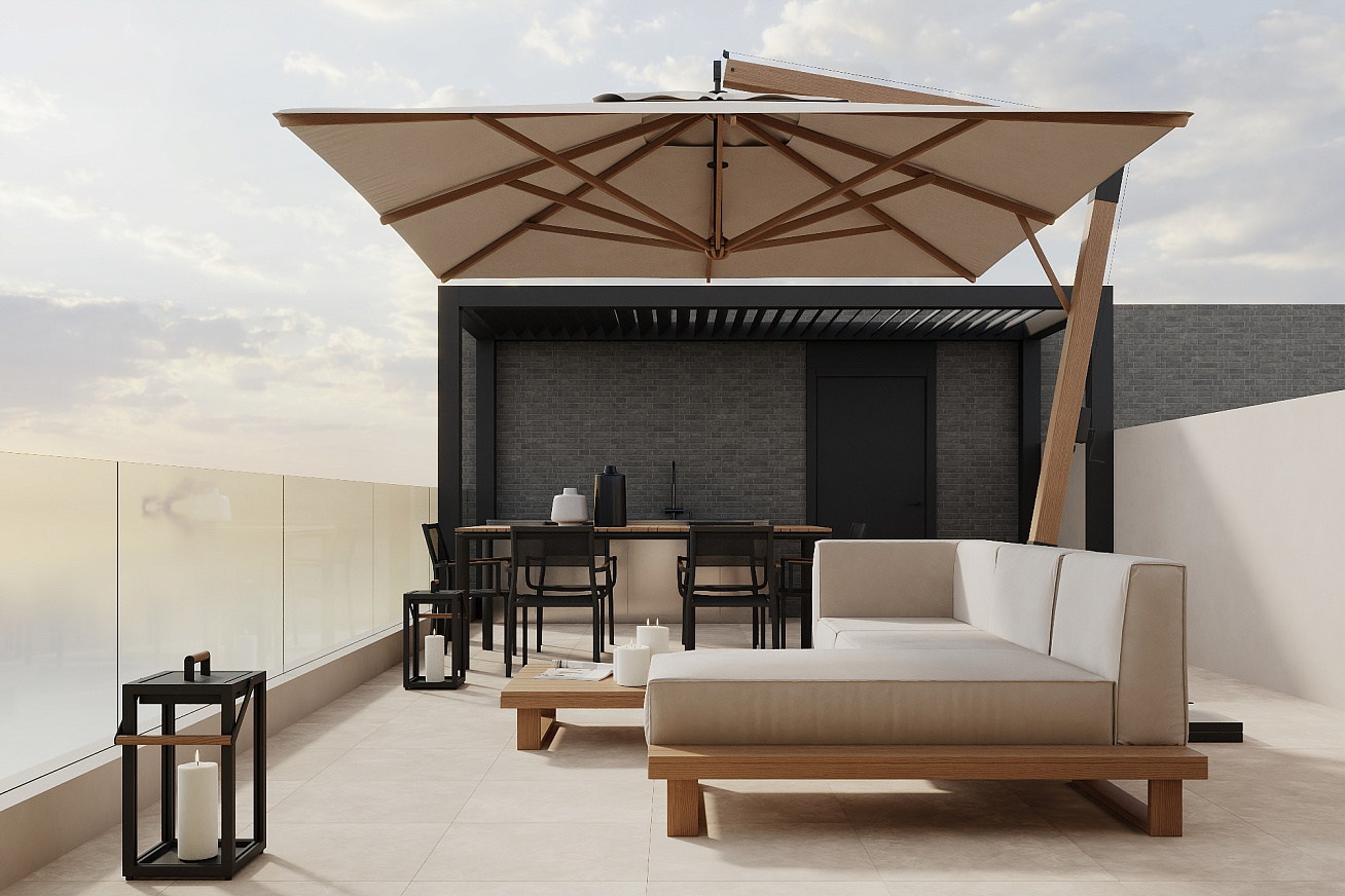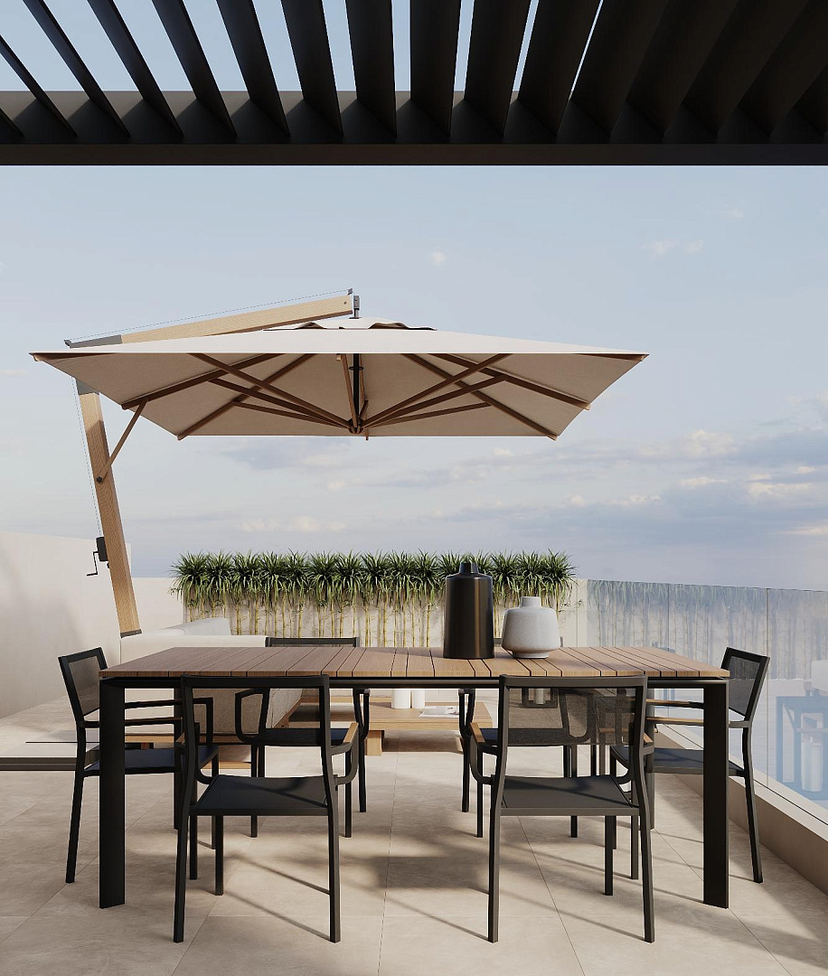 Life in the complex is comfortable and safe due to the private protected area. There is a communal swimming pool and a rooftop barbecue area for residents.