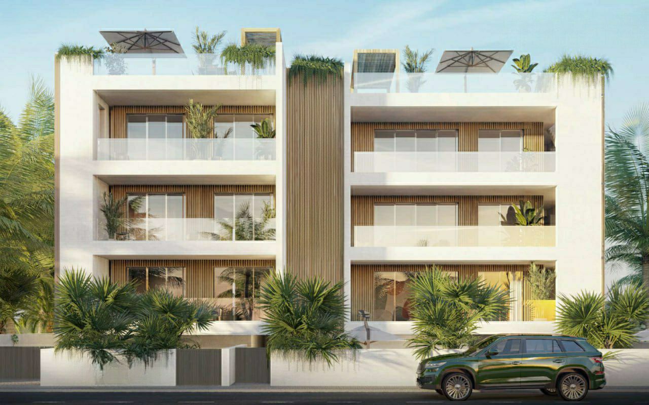 A new modern complex in the Universal area, Paphos. There are only 6 apartments in the three-storey complex. Each apartment has an open-plan kitchen and living room, two bedrooms, two bathrooms, a spacious private terrace and a green area.