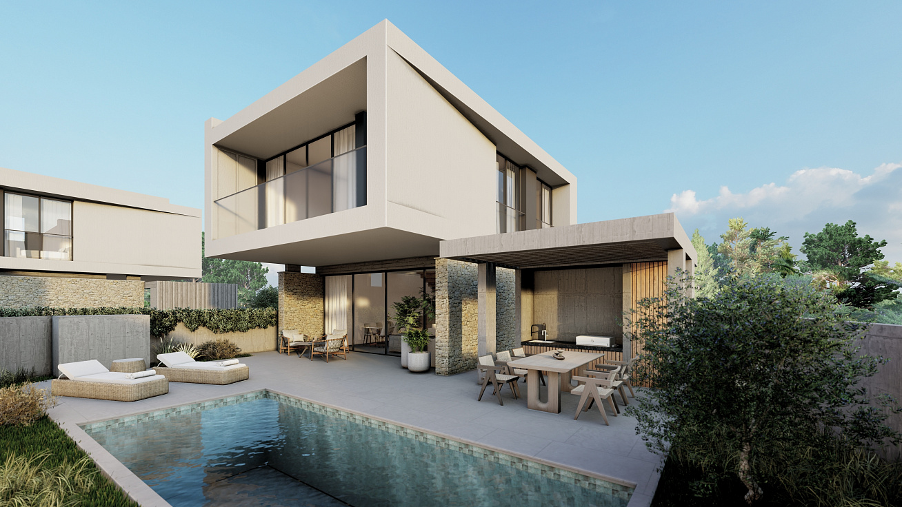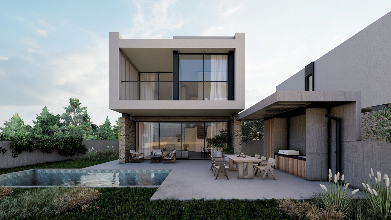 The new residential complex of villas is located in Geroskipou, Paphos and is an excellent option for a comfortable stay or a profitable investment. The project is located in a quiet and developed area with convenient access to all necessary infrastructure, including shops, schools, restaurants and beaches.The villas feature thoughtful layouts with spacious living rooms, modern kitchens and cozy bedrooms, creating a bright and comfortable living space. High-quality materials and modern technologies are used in construction, providing a high level of comfort, as well as good thermal and noise insulation.Each villa has a private house territory and parking space, as well as the possibility of arranging a recreation area or garden. Due to its convenient location and high quality of construction, this complex is an excellent choice for both permanent residence and investment.
