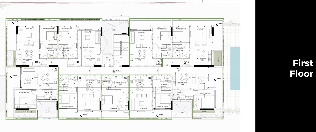 Modern residential complex in the area of Town Center Paphos. The building covers three floors and offers a total of 21 carefully designed apartments: 12 spacious one-bedroom apartments, 6 two-bedroom apartments and 3 stylish studios.