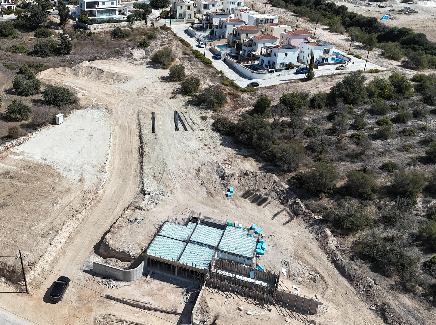 The convenient location of the complex provides quick access to all necessary infrastructure. Supermarkets, cafes, restaurants, sports facilities and an international private school are within walking distance. It is about a 10—minute drive to the sea and about 30 minutes to Paphos International Airport.