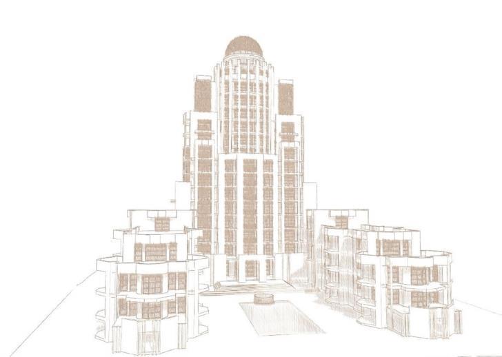 The developer intends to build a 13 794.60 m2 17-storey residential high-rise with 53 apartments and a 26 640 m2 16-storey office building on the site where the Landmark hotel complex is now located. Each high-rise will have a two-level underground parking. The total parking capacity will be 476 parking spaces, of which 15 will be allocated for people with disabilities and 59 for bicycles.