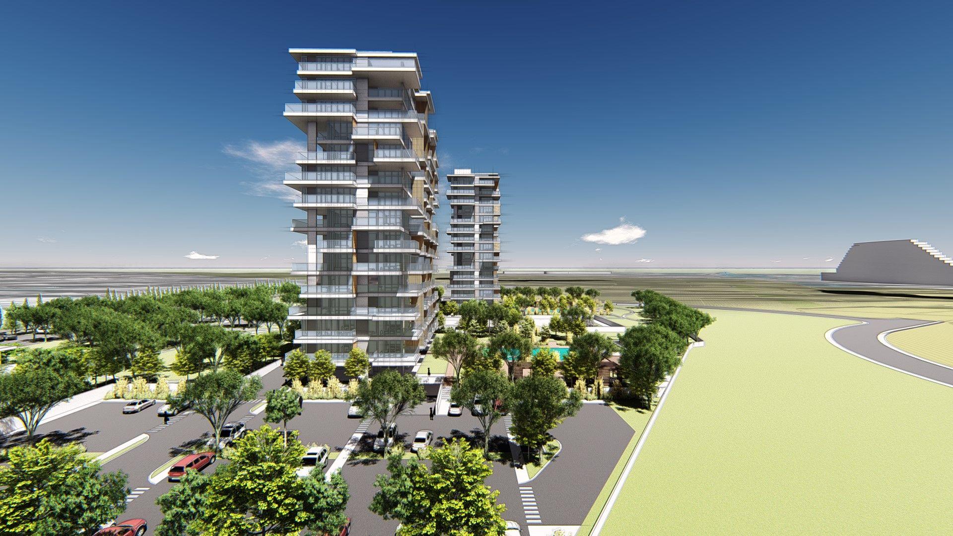 The Orion project includes two modern and luxurious residential towers with underground parking, gym, sauna and concierge services. The height of each building will be 64 m, and the apartments will have a panoramic view of the city. The apartments have private pools and gardens.