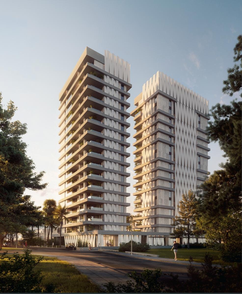 The project involves the construction of a 17-storey high-rise and two detached 4-storey buildings, framing the high-rise, in one of the most prestigious areas of the city, just 700 meters from the sea.