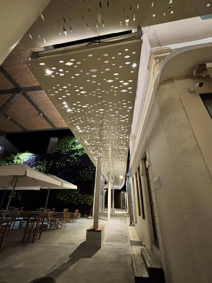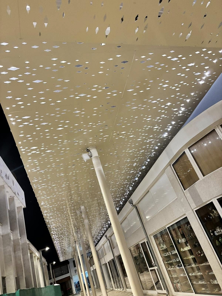 In Paphos, the installation of an elegant metal canopy over the Laiki Geitonias area, the city's historic commercial centre, has been completed.