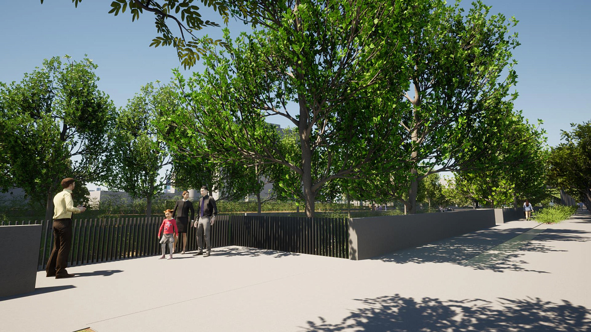 A 78-metre-long metal pergola with a perforated/open top will be installed for planting climbing plants.