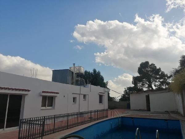 The building is about 30 years old. The house has a living room, kitchen, office, bathroom, toilet, and three bedrooms, each bathroom also has a shower and toilet. The total area of the building is 190 m2, covered terraces are 55 m2. The property includes a large courtyard with swimming pools and an outbuilding. The house is ideal for living or renting out.