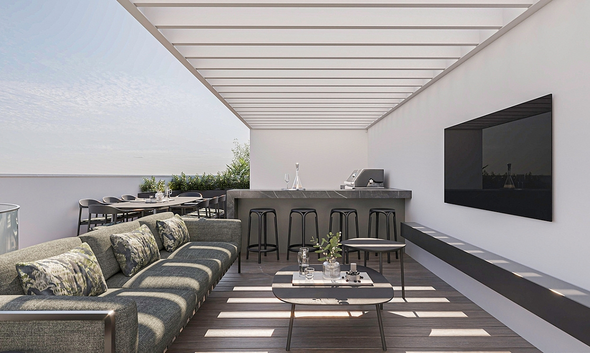 The residential project will be distinguished by its modern design and architecture, as well as the high quality of construction and finishing materials used in its realization. At the same time, the exterior design of the building will harmoniously integrate the project into the environment. The building will receive a class A energy certificate and will have sound and heat insulation. On the roof will be installed photovoltaic panels for the production of renewable energy, which will provide the owners with significant savings on electricity. In addition, the complex will have controlled access and a CCTV camera at the entrance to the building.