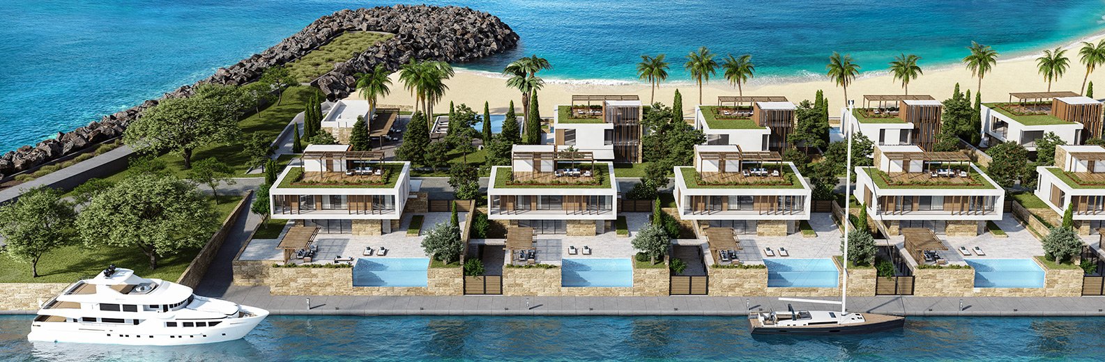 12 luxury 3-bedroom villas, with private and secure access to the Marina Peninsula, with direct views of the marina and private mooring area at safe docks. The glass surfaces used for the construction of the villas and the modern, open layout in the main spaces unite the interior and exterior spaces, giving an unobstructed view to the sea.