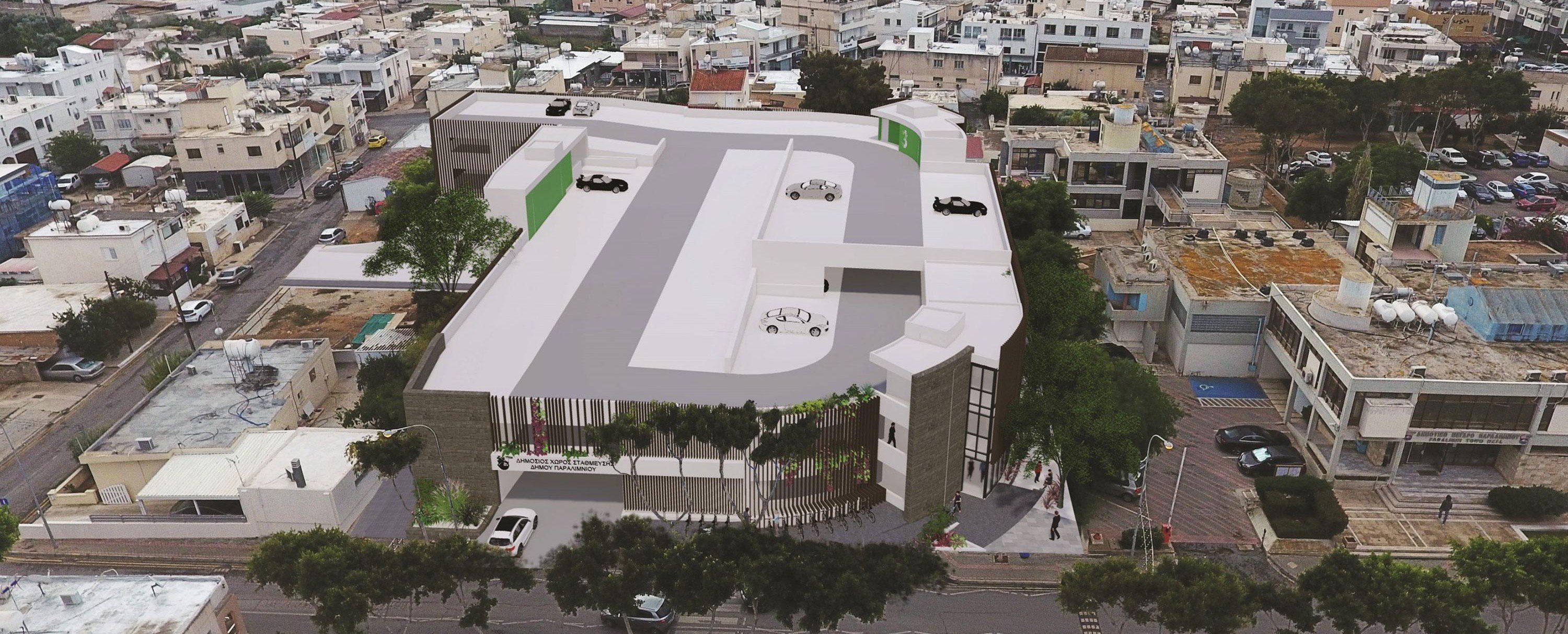 The project provides for the construction of two underground and two above-ground levels. The total capacity will be 296 vehicles, which will significantly increase the number of available parking spaces in the center of Paralimni. Special attention is given to accessibility: 19 spaces will be specially equipped for people with disabilities. In addition, three parking spaces are planned for electric vehicles with the possibility of installing charging infrastructure.
