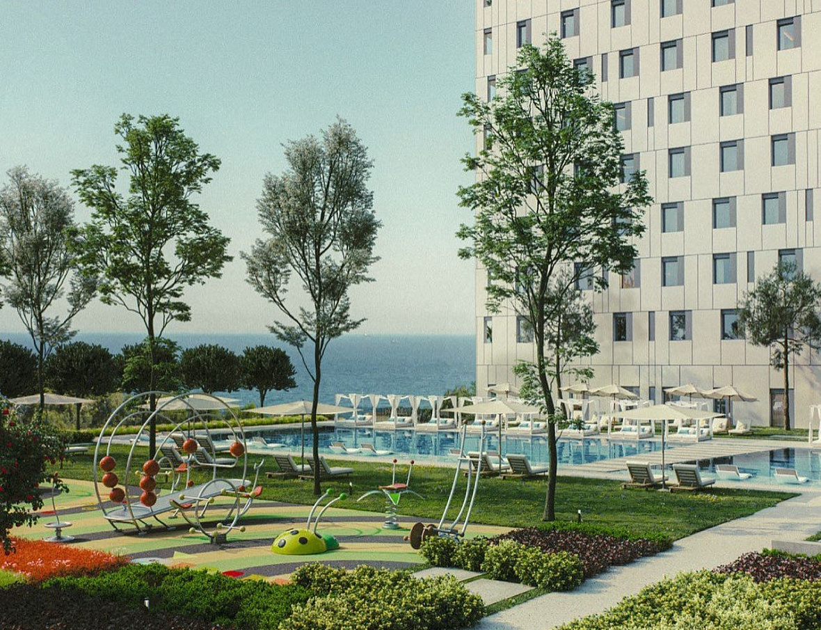 It's worth noting that the first international Marriot International branded skyscraper is situated just 20 meters from the sea.