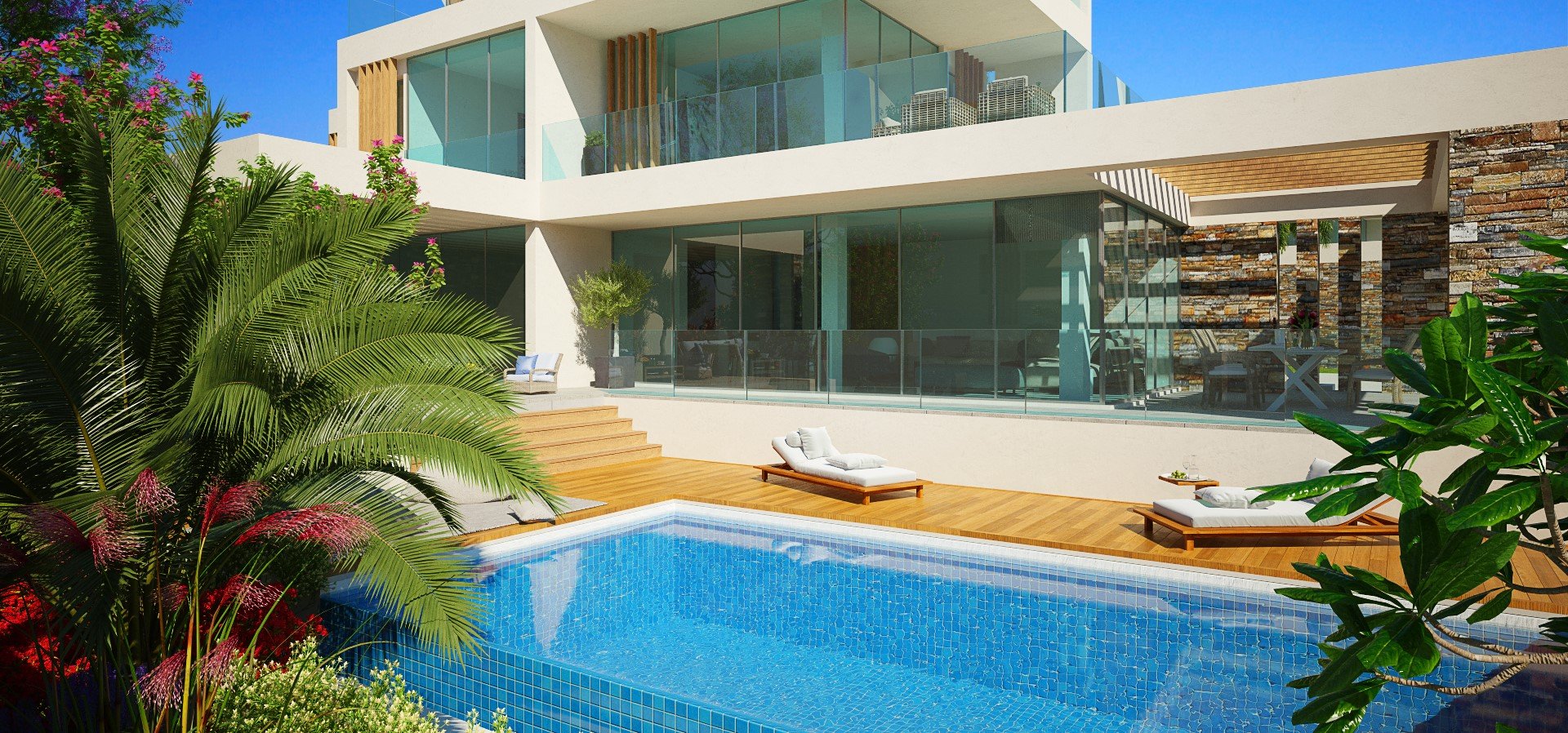 The 15,887 m2 luxury residential complex will adorn the prestigious neighborhood of Peyia. Due to the extremely convenient location, the owners of the mansions will be able to quickly get to any part of the city and the airport. It should be mentioned that just 800 meters from the development site is the magnificent beach of Coral Bay.