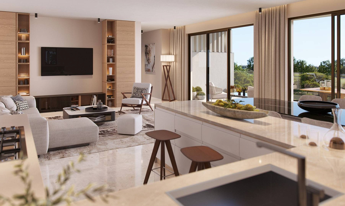 In the heart of Limassol Greens, near the club village and clubhouse, there is the Robin Apartments complex. It is divided into two sections with separate lobbies and lifts. Potential buyers can acquire 2- and 3-bedroom apartments here, which offer stunning panoramic views of the golf course, Salt Lake, forest, and sea. The apartments are surrounded by gardens specifically designed by landscape designers from the architectural and design bureau HKS, creating a comfortable atmosphere for relaxation and leisure. The residents of the apartments have access to swimming pools, lounge areas, and all the amenities for picnics and barbecues.