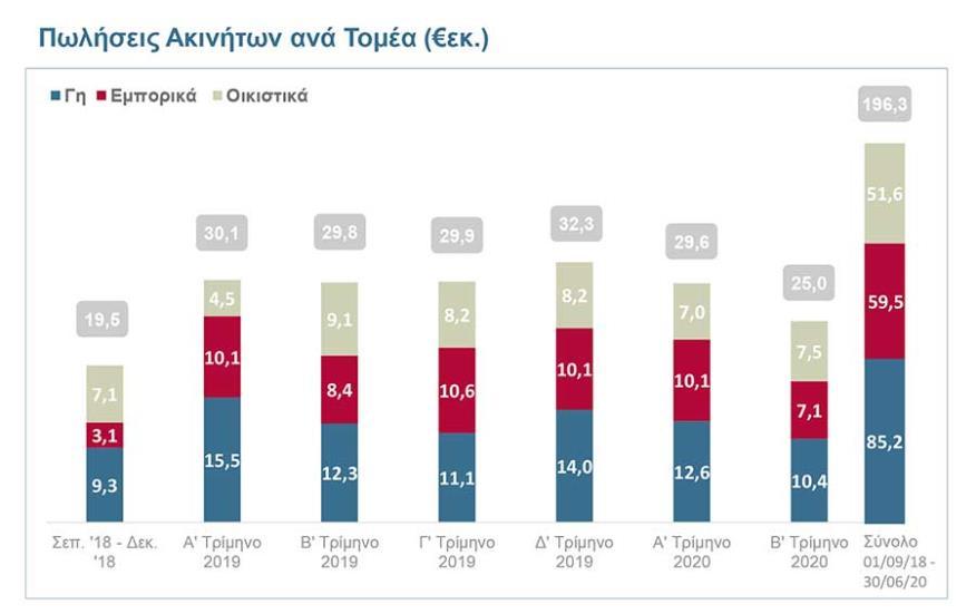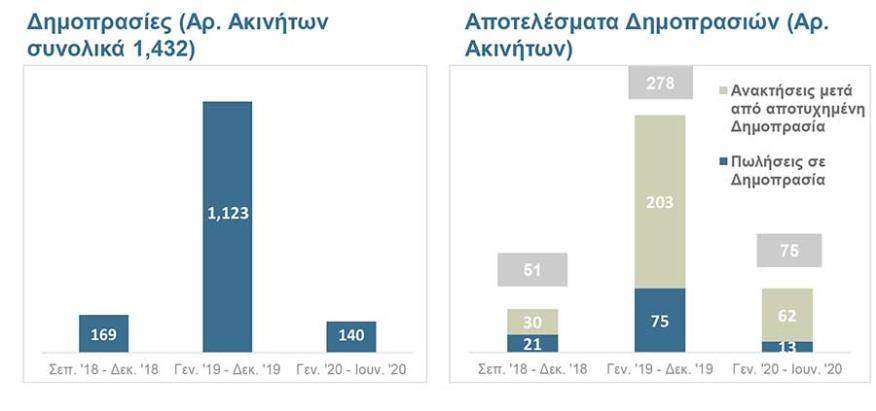 Debt-based real estate recoveries amounted to a cumulative € 246 900 00 (of which € 29 000 000 recovered after failed auctions) with the second quarter of 2020 showing a decrease to € 11 000 000 of the pandemic compared to € 23 200 000 and € 58 200 000 from the previous recent quarters.