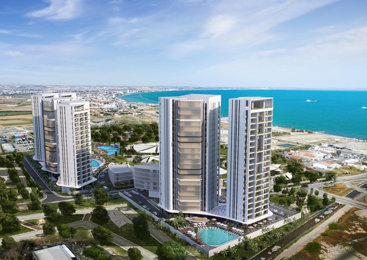 The €40 million complex includes two towers rising 68 meters high, located next to the Larnaca Marina.