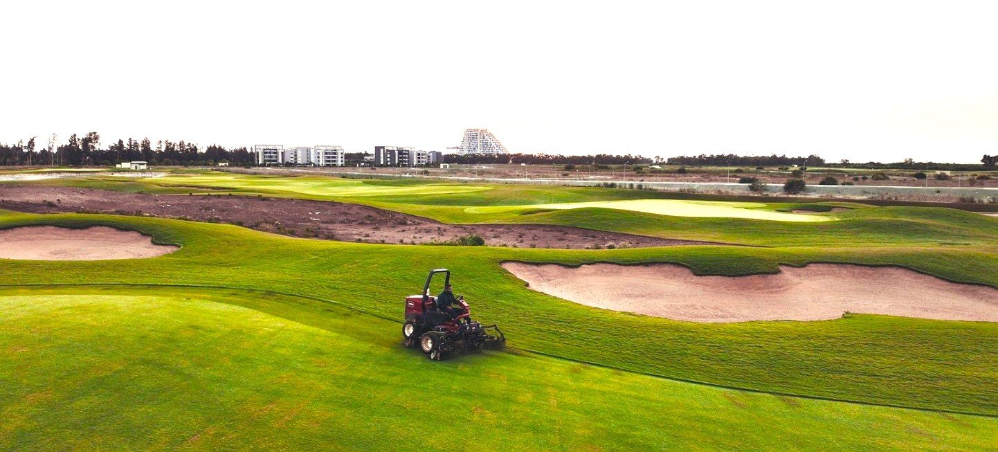 The project places strong emphasis on eco-friendly infrastructure. The course and green areas are irrigated exclusively with tertiary-treated recycled water, in accordance with national standards. The grounds include a comprehensive water management system with artificial lakes and reservoirs totaling 40,000 m³, allowing rainwater collection and minimizing the use of public water resources.