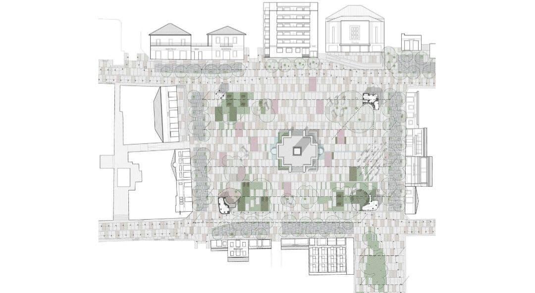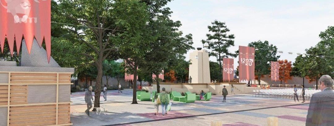 According to the idea, the level of the roadway and the square will be leveled. Public spaces will be formed around four gazebos at the corners of the square. Trees and shrubs will be planted along the perimeter of the square. Lighting will be designed in the form of hinged lanterns, and all stationary lanterns will be moved to the western side of the square.