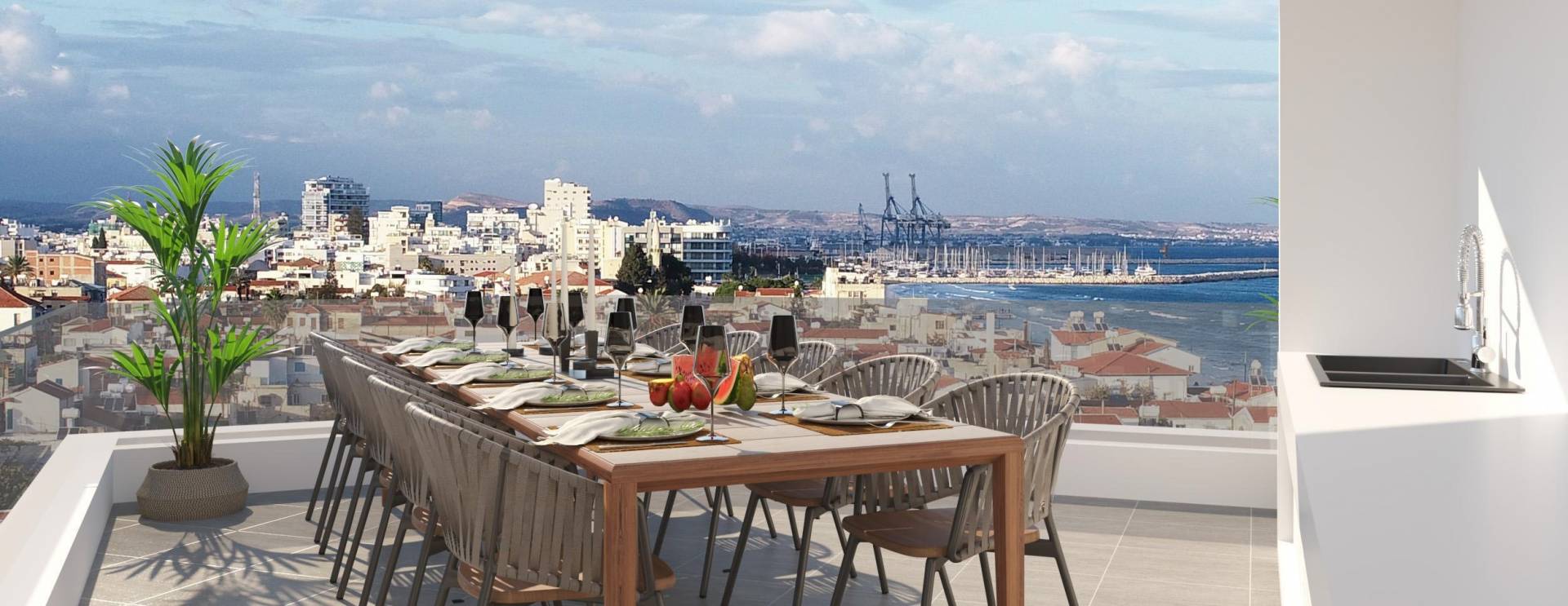 According to the release, the new luxury apartment complex will be located in the Mackenzie area on Devrim Street, just 130 meters from the sea and the Larnaca Fortress.