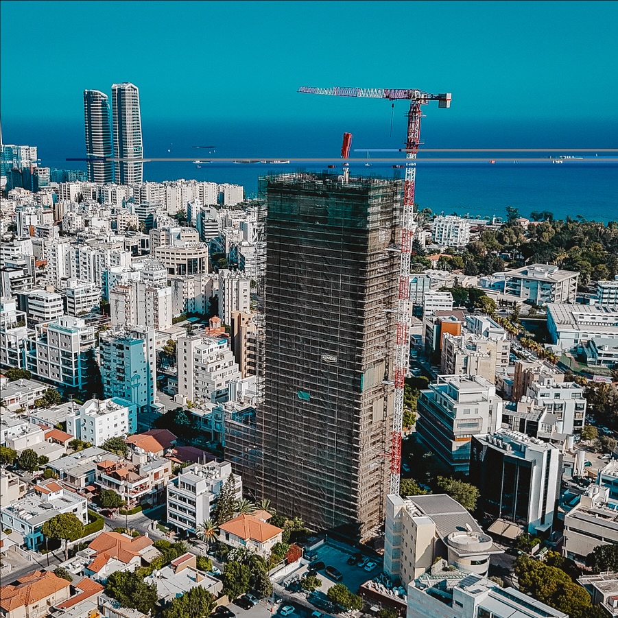 The 26-storey skyscraper is being built on Agios Nektarios Street. The building will house numerous offices, shops, a business centre, a cafeteria, a gym, apartments and a Euro-Mediterranean Centre for Alternative Dispute Resolution. The project also includes a 4-storey underground car park and a surface car park with a total of 110 parking spaces, 7 of which will be reserved for people with disabilities. The underground garage will also have 8 bicycle parking spaces.
