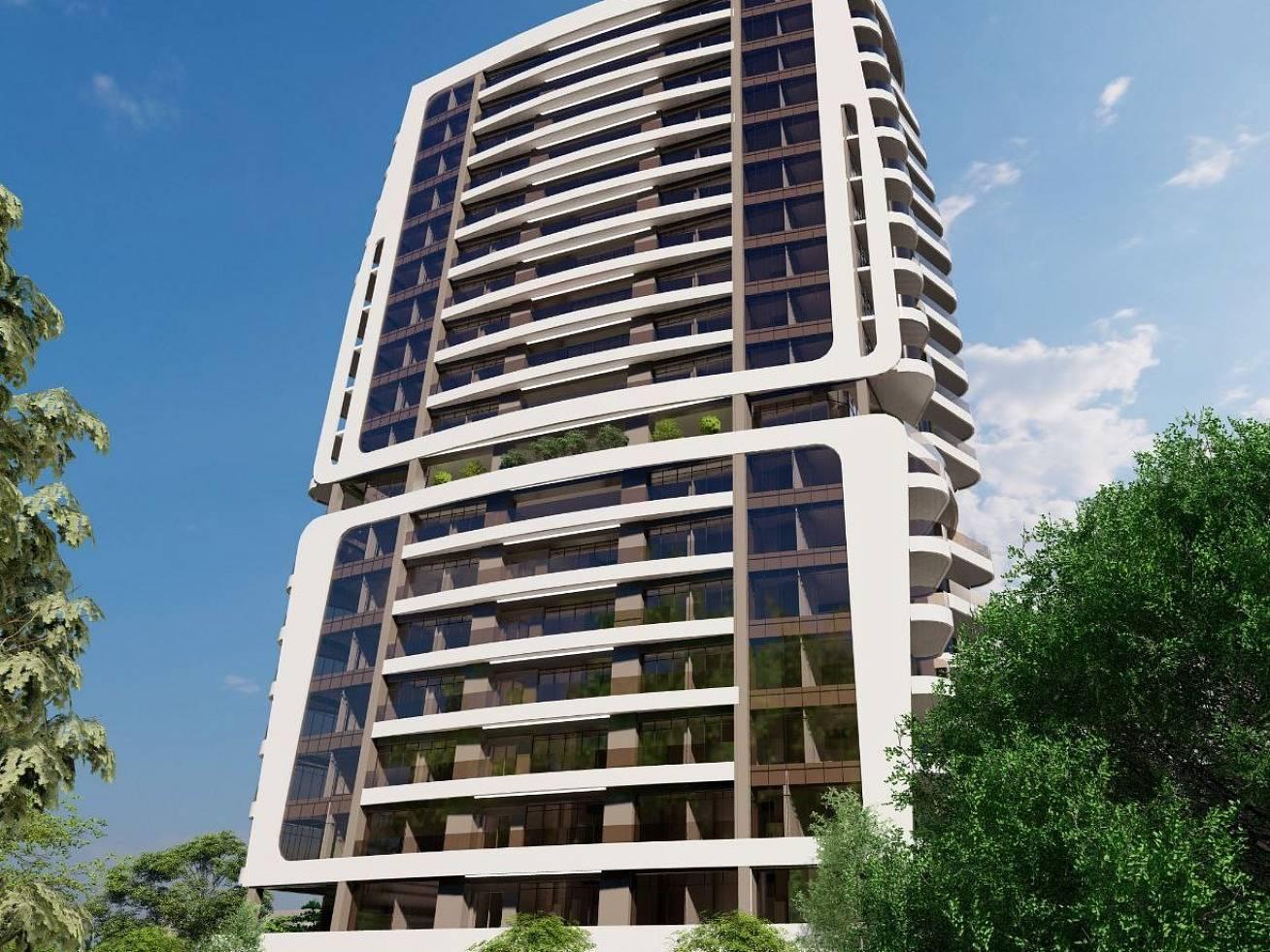 The total height of the building will be 104 meters. 24 floors will be given for luxury apartments. A total of 142 apartments with one, two, and three bedrooms will be equipped in the tower. Also in the skyscraper, there will be stores, restaurants, cafes and bars. Three underground levels of the complex will be occupied by a spacious parking lot.