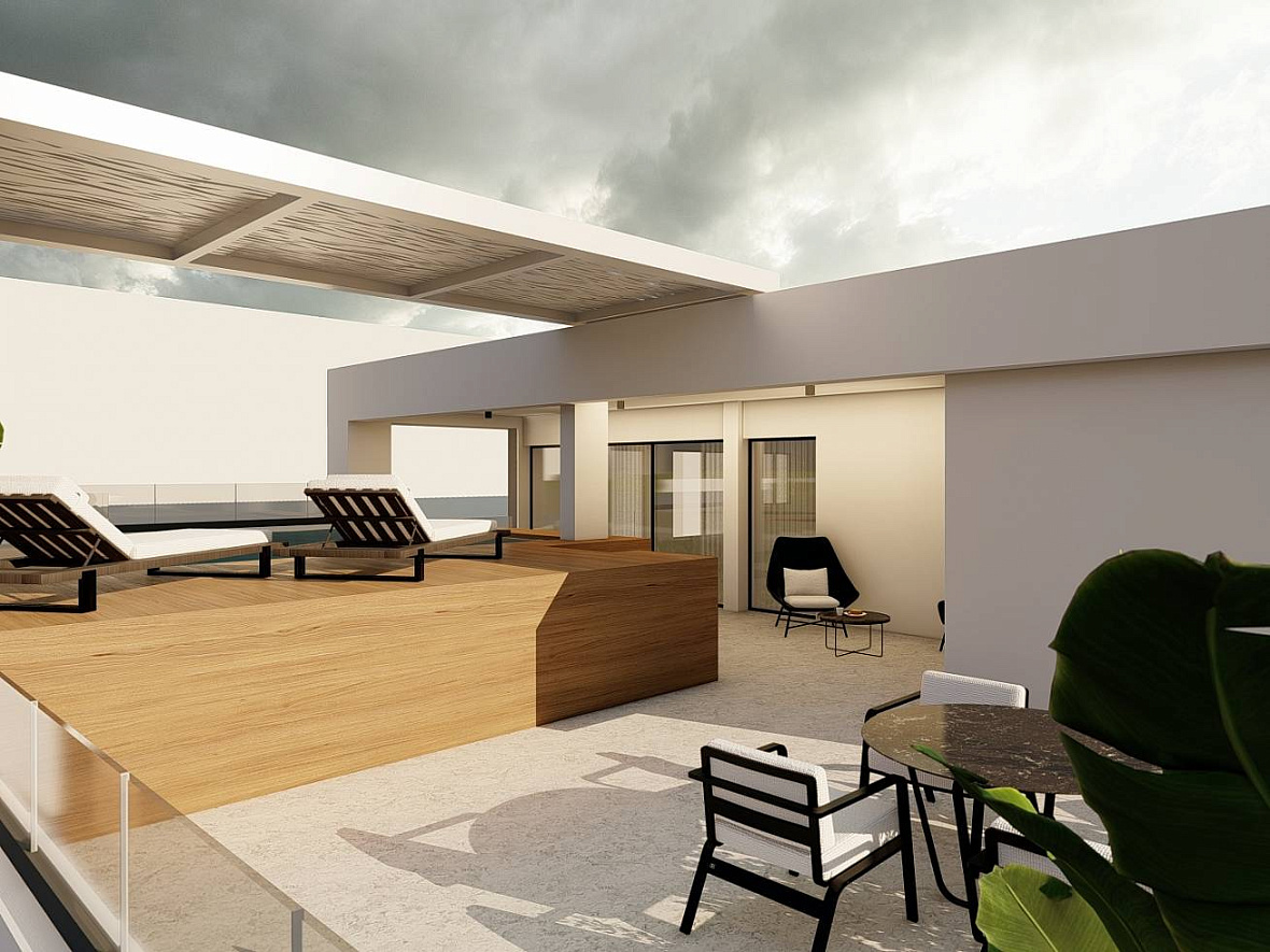 The three-story building will comprise seven 2- and 3-bedroom apartments, as well as a luxurious 3-bedroom penthouse with a huge veranda, private pool, and garden. The apartment sizes will range from 87 m2 to 121 m2.