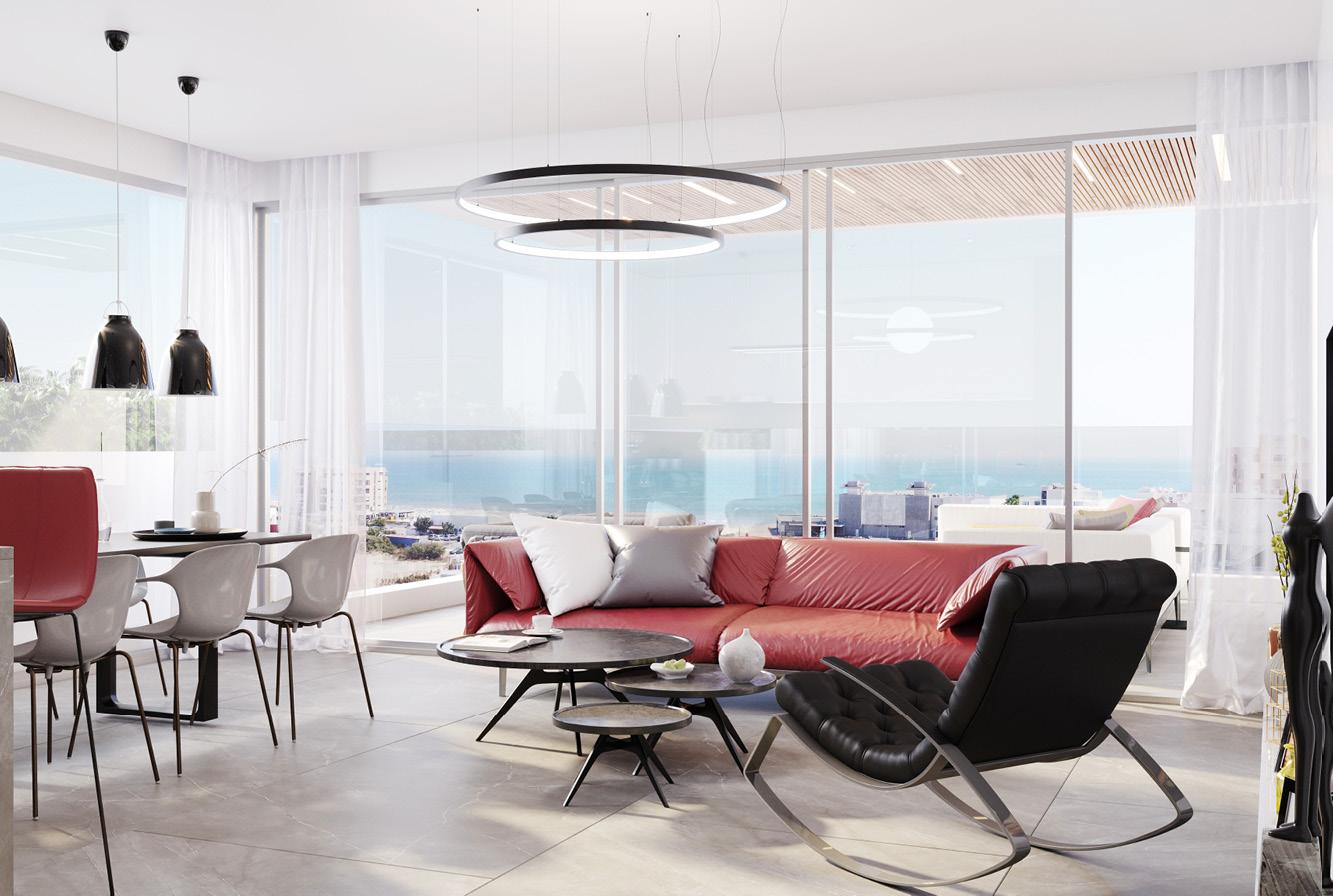 The modern 8-story building is being erected at the intersection of Goethe and Franz Schubert streets, about 350 meters east of Larnaca Salt Lake, 800 meters north of the airport and only 80 meters from the sea and Mackenzie Beach.
