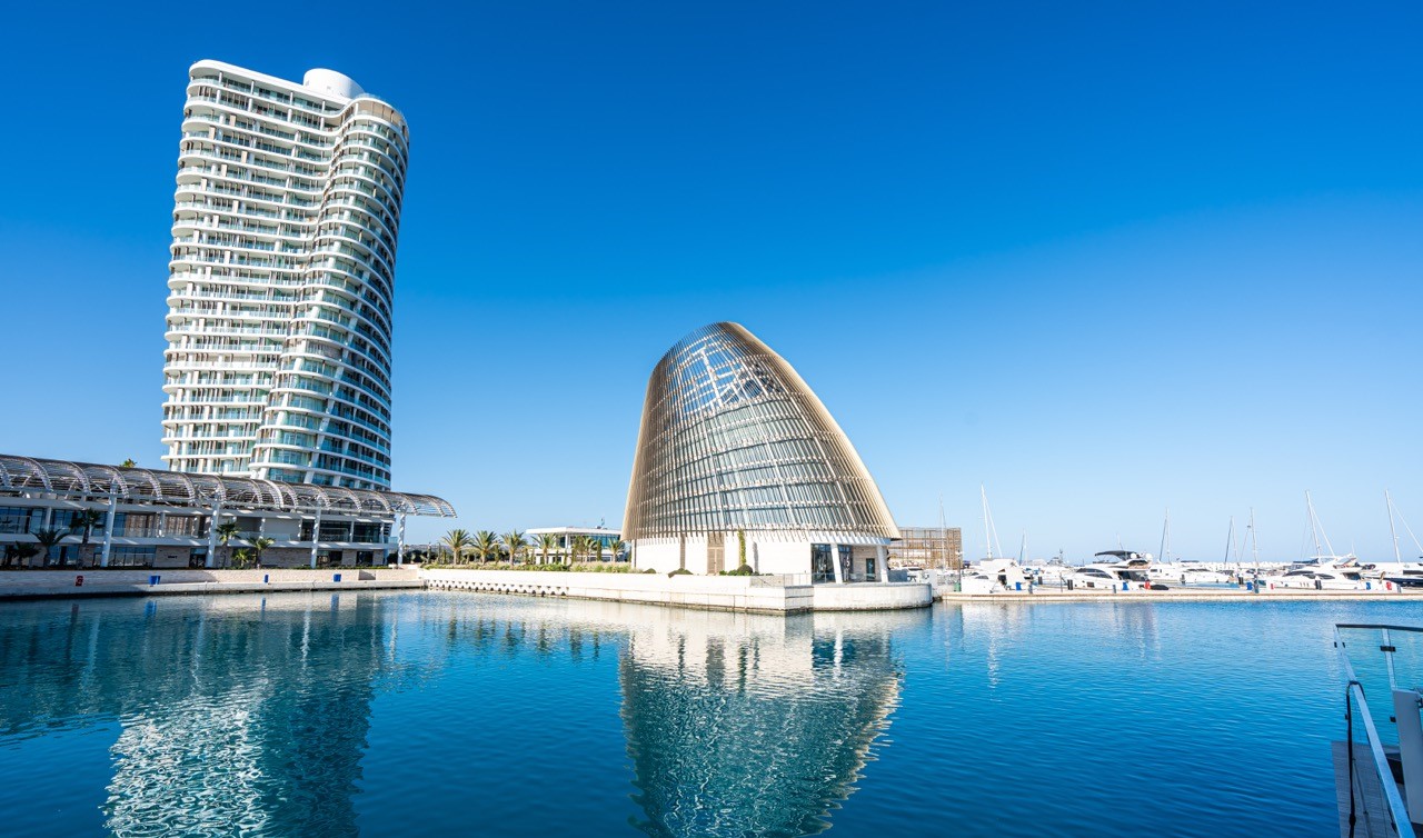 - A 12-villa complex on an artificial island with moorings Island Villas. These include 3-, 4- and 5-bedroom villas. These unique homes are designed so that large floor-to-ceiling windows provide their owners with natural light and stunning views of the marina. They are built to the highest aesthetic standards, with meticulously designed interiors, superior materials, fixtures and fittings to provide owners with comfortable indoor and outdoor living.