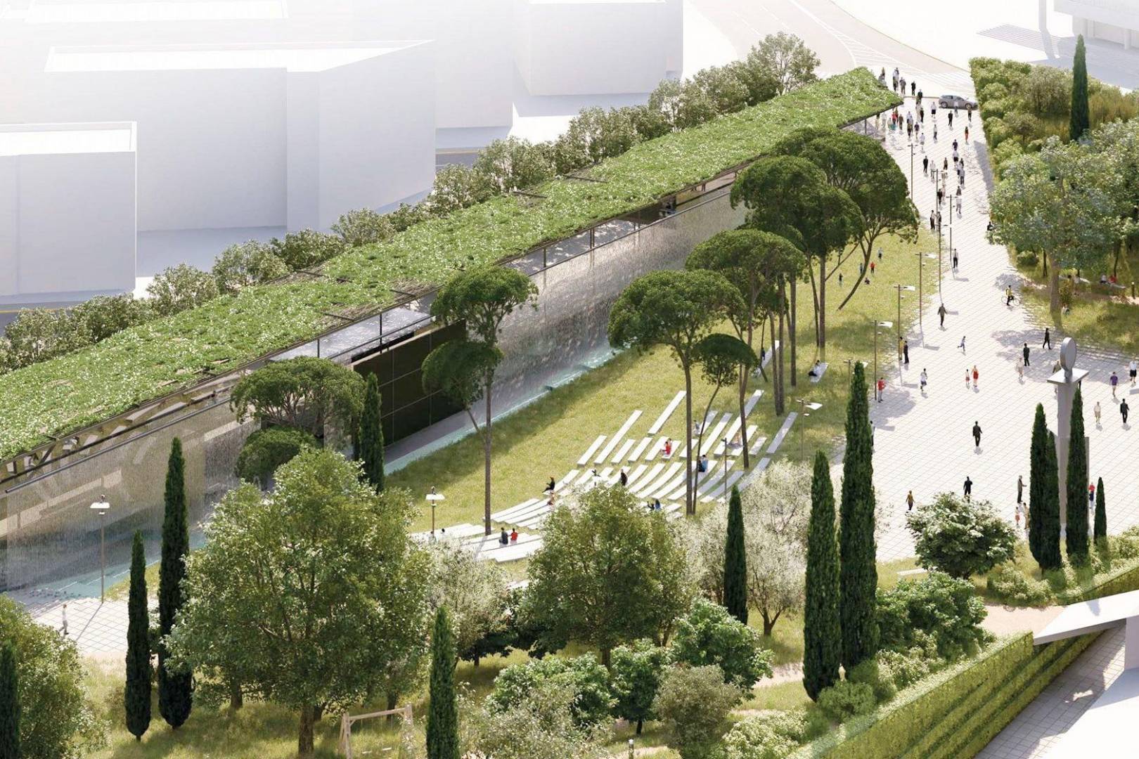 The municipality plans to create a modern city square, places for recreation, plant greenery around the stadium, as well as build a spacious two-level underground parking for 570 cars. Level A will accommodate 222 parking spaces, 21 of which will be reserved for people with disabilities, level B - 379 parking spaces, 30 of which will be reserved for people with disabilities. 7% of the total area (880 m2) will remain free of underground structures to allow for the planting of tall trees. Low trees and other vegetation will be planted over the underground parking facilities. The new park will also include a cafe, restaurant, bookstore, art gallery, amphitheater, square, small waterfall and water wall.
