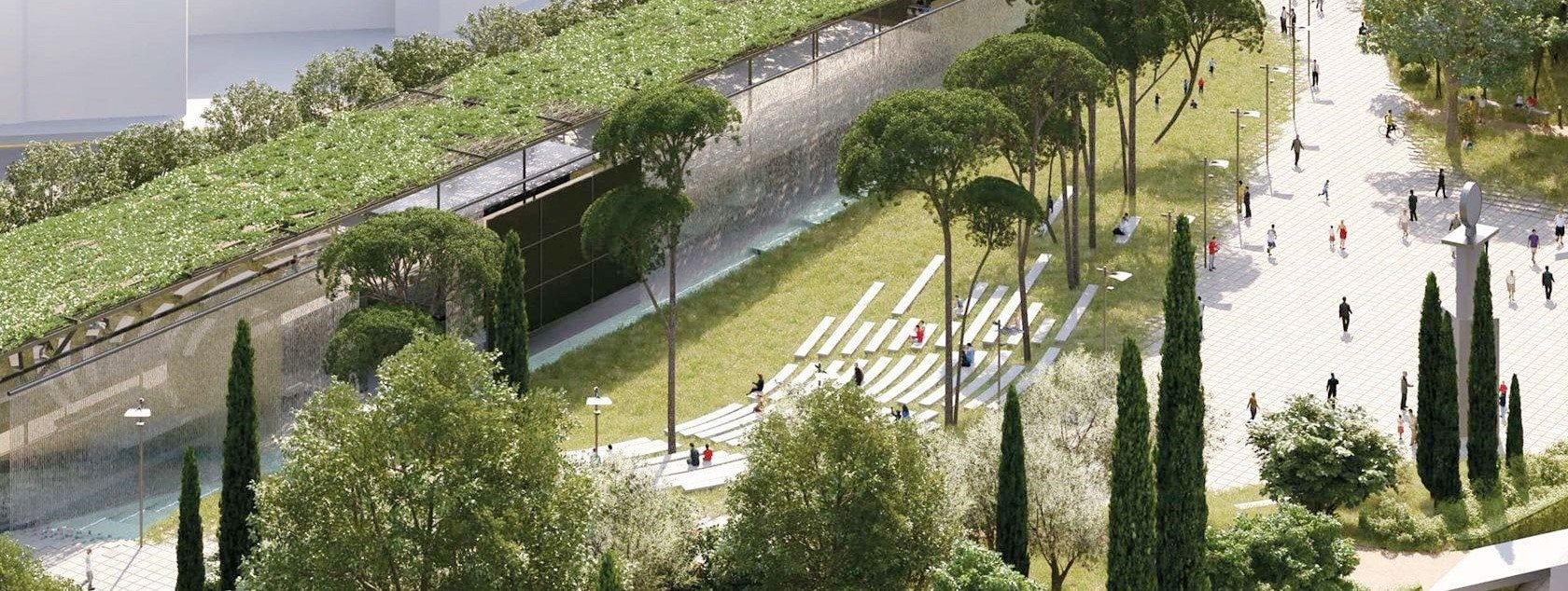 The municipality plans to create a modern city square, places for recreation, plant greenery around the stadium, as well as build a spacious two-level underground parking for 570 cars. Level A will accommodate 222 parking spaces, 21 of which will be reserved for people with disabilities, level B - 379 parking spaces, 30 of which will be reserved for people with disabilities. 7% of the total area (880 m2) will remain free of underground structures to allow for the planting of tall trees. Low trees and other vegetation will be planted over the underground parking facilities.