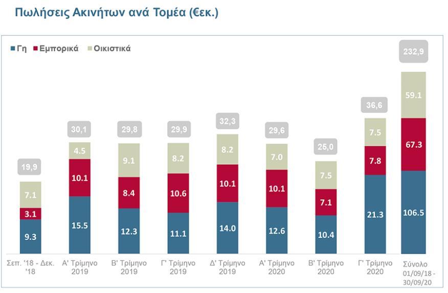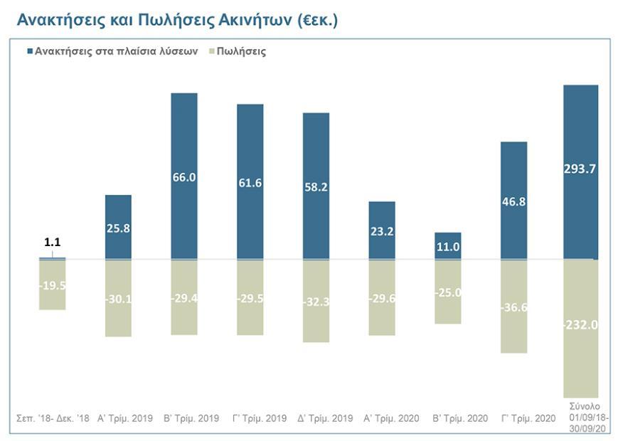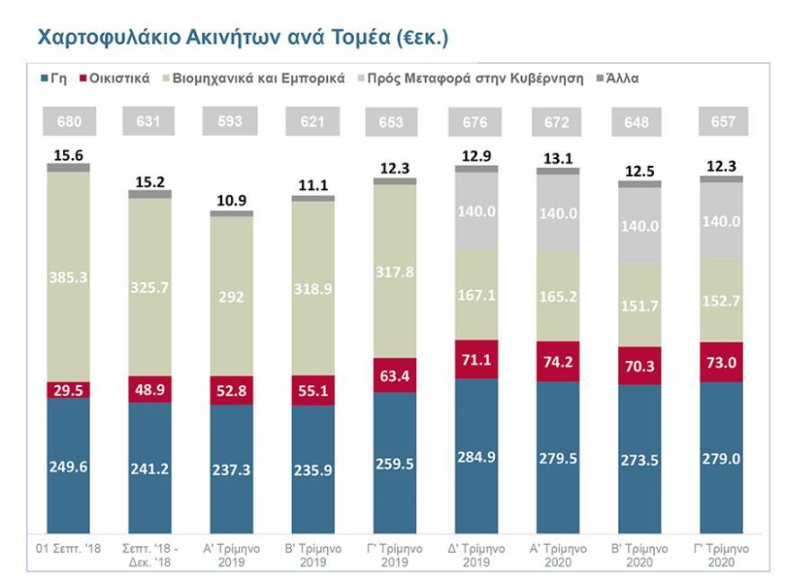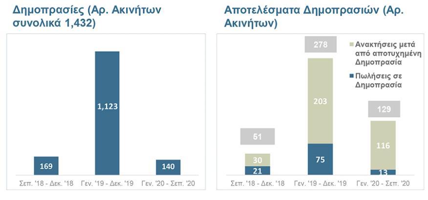 Real estate worth € 657 million is included in the assets of KEDIPES for the third quarter of 2020, while it is noted that in the third quarter of 2020, real estate sales amounted to € 36.6 million, while for the first quarter of 2020, real estate amounting to €13 million were sold through auctions.