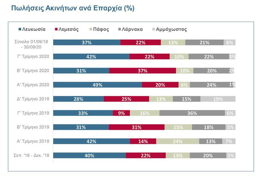The stock of real estate for sale consists mainly of medium marketability and value real estate. Real estate in Nicosia represents 39.5% of the total supply, while there is a widespread in all provinces. A total of 710 properties worth € 4 million were sold within one year of their recovery, recording strong buying interest in the market except for March-May 2020 due to pandemic