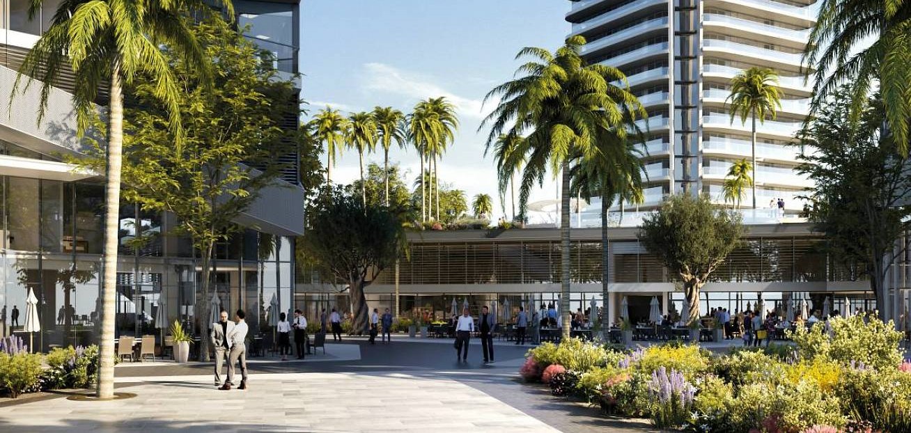 The two unique towers are almost completed and only days remain until the owners of modern offices and luxury apartments take possession of their real estate. At the same time, all the efforts of the developer are now focused on the interior plaza with an area of 6,850 m2. It is expected to be ready by the summer of 2024.