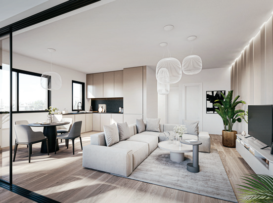 On a plot of land measuring 31,711 square meters, four 4-story buildings will be built, housing 400 elite apartments. They will be constructed in a unified architectural style. It is worth mentioning that the project was developed by a professional team of architects, engineers, and interior designers. During the design process, three main parameters were given attention: layout, dimensions, and use of space. Therefore, each apartment will have a modern design, high-quality finishes, and thoughtful planning.