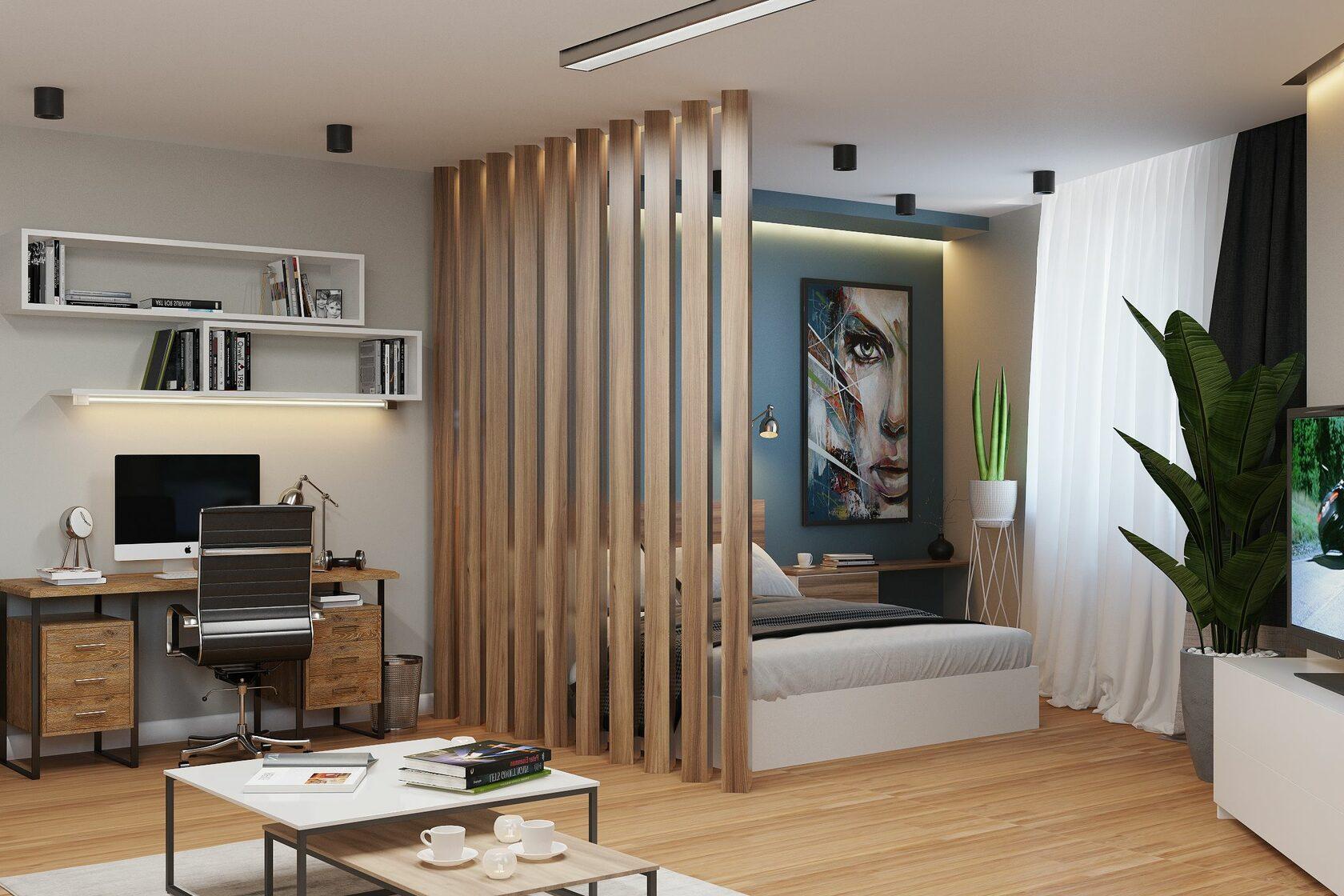 Arranging furniture along the perimeter, we forget that our room also has a height. Try to go "vertical": for example, buy a bed that has a desk at the bottom. And in studios with high ceilings, which are now many, in general, there is an opportunity to build a whole improvised second floor, on which you can arrange a place to sleep or work - so you get almost a separate room. To store rarely used things on the second tier you can build a mezzanine.