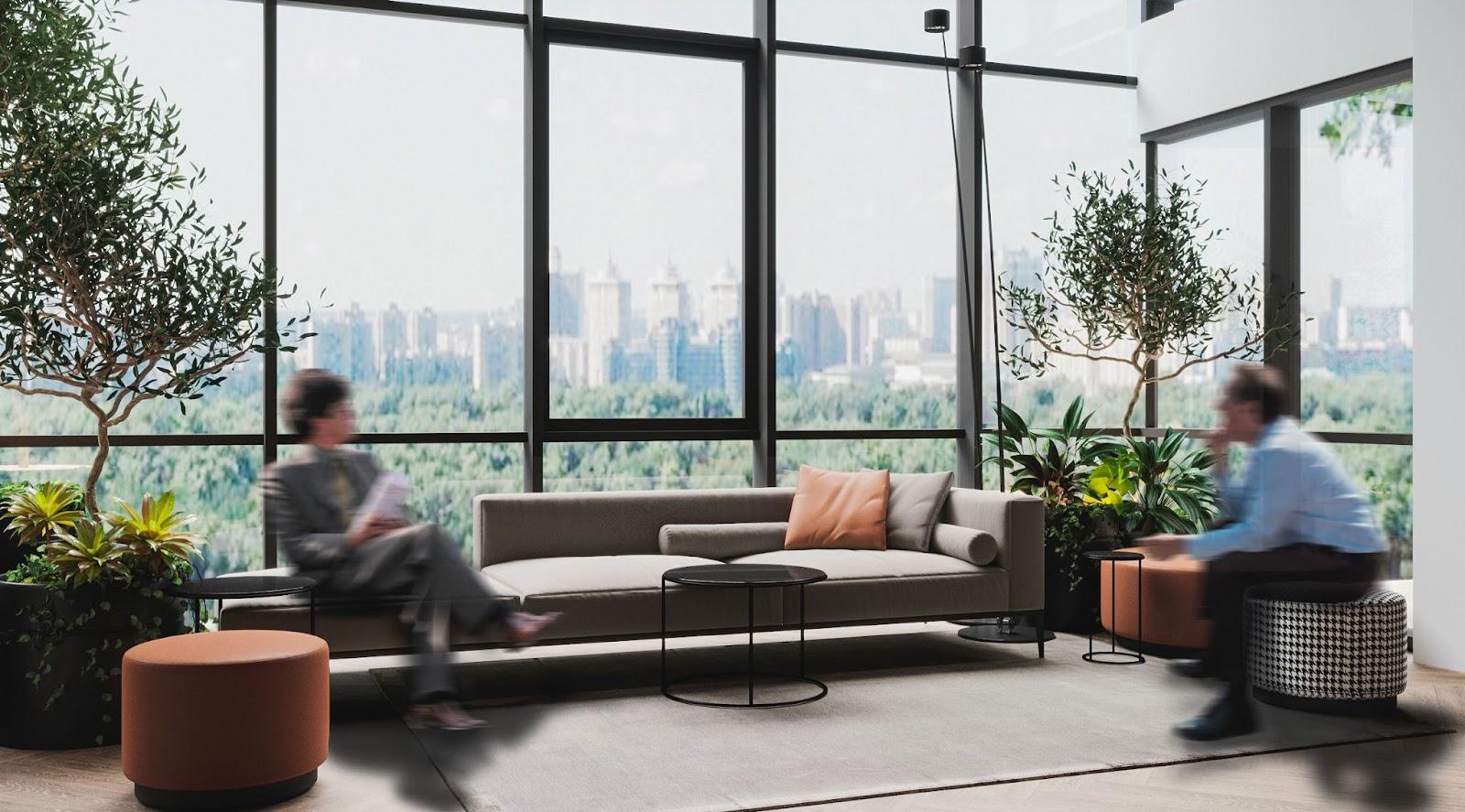 A large amount of natural light not only saves electricity but also positively affects the mood and well-being of employees. Consider how much natural light enters the space.