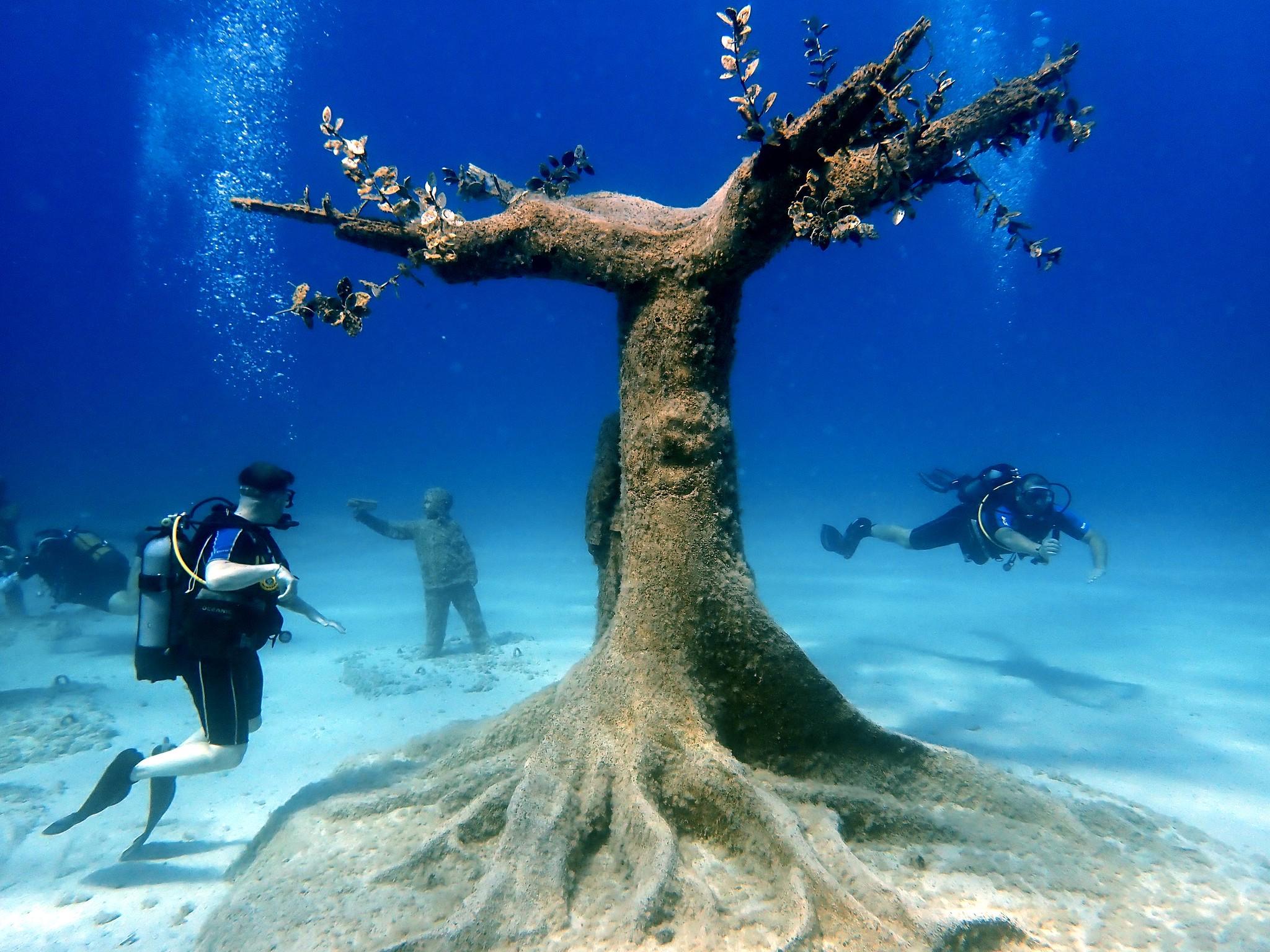 Near Ayia Napa, in the coastal area of Pernera, lies the MUSAN Underwater Museum, a unique combination of reefs and underwater art installations. More than 93 statues in the form of trees, flowers, and human figures are submerged at a depth of eight to ten meters between natural rock formations. The statues are made of pH-neutral materials that support the growth of marine flora and fauna. They already function as artificial reefs, attracting a variety of wildlife. MUSAN is located in a protected marine area and is open to divers and snorkelers. It is a project in which art becomes a living underwater ecosystem.
