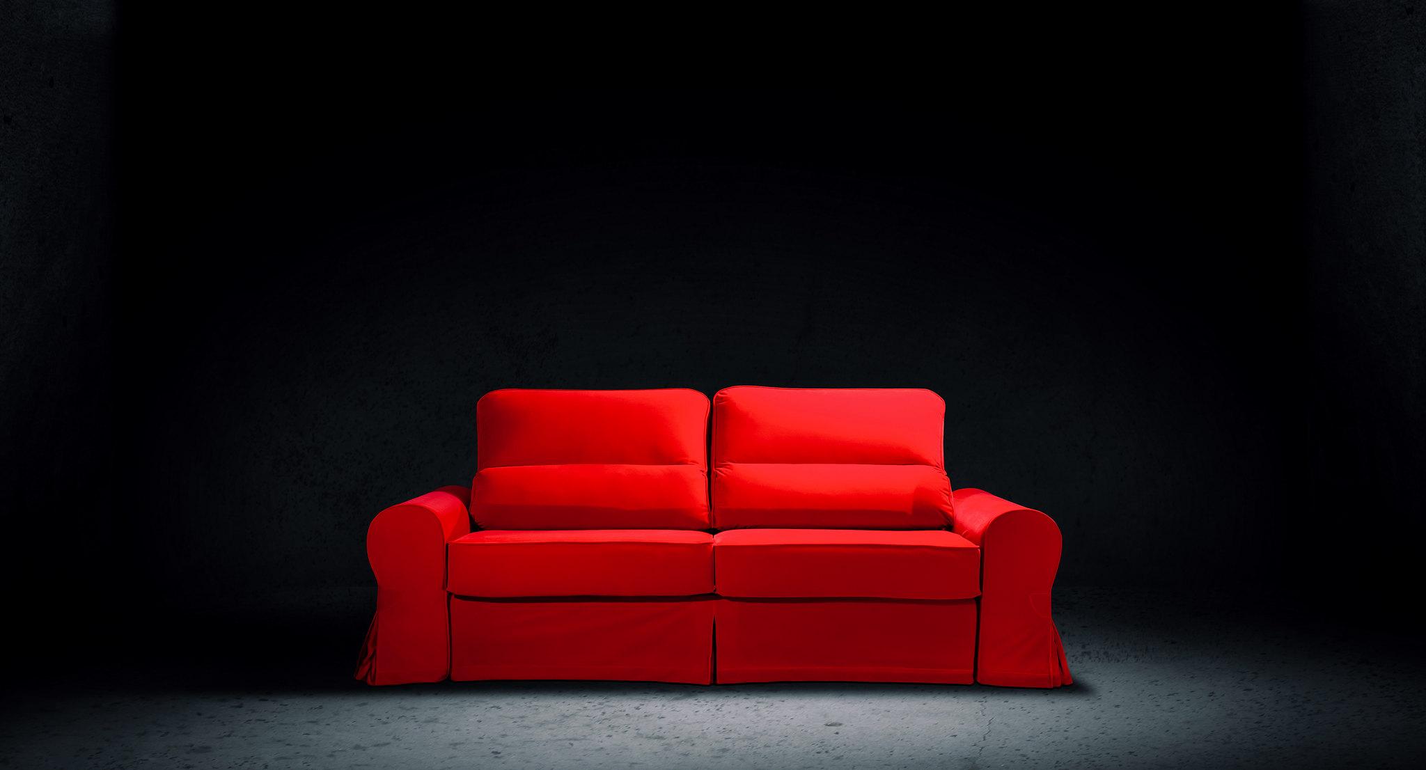 The first option is to place one red sofa or several red chairs, and then complement them with small "spots" (a small vase, a bold avant-garde painting, a small print on curtains).