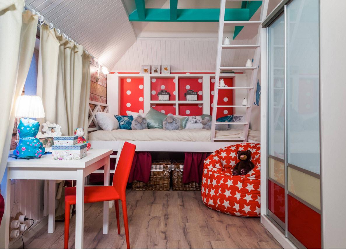 There is no need to be afraid of the red color in a child's room - a small amount of this shade only has a positive effect on children. Ideally, it should be combined with a couple of bright companions, while something light serves as the main tone.