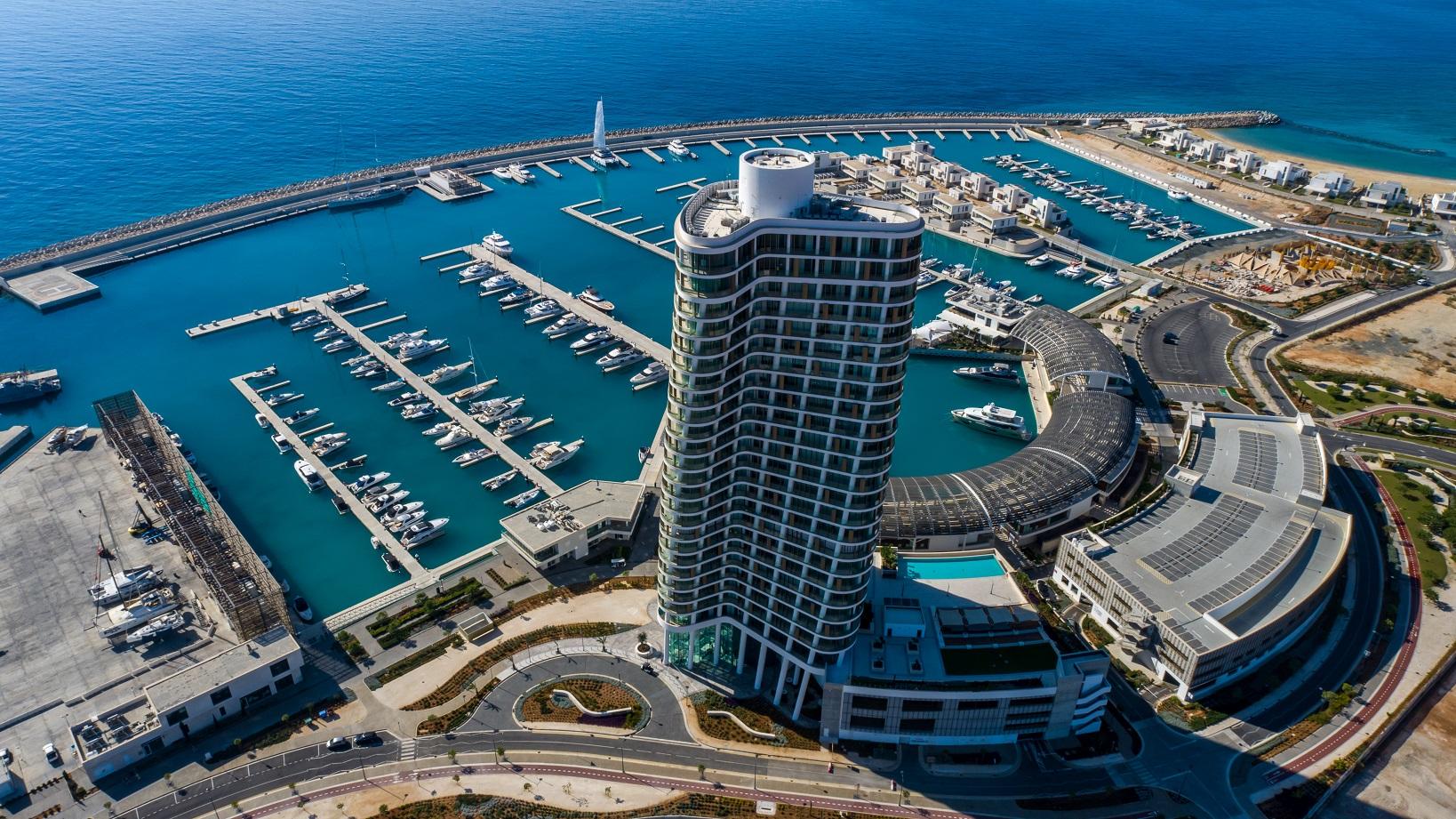 Ayia Napa Marina is a prestigious seaside resort with waterfront residences offering spectacular views of the sea and yacht marinas. The complex's 26-storey East Tower is the tallest building in the Famagusta area and offers luxury apartments with panoramic views. The building's unique twisted design and high quality finishes emphasise its architectural excellence.