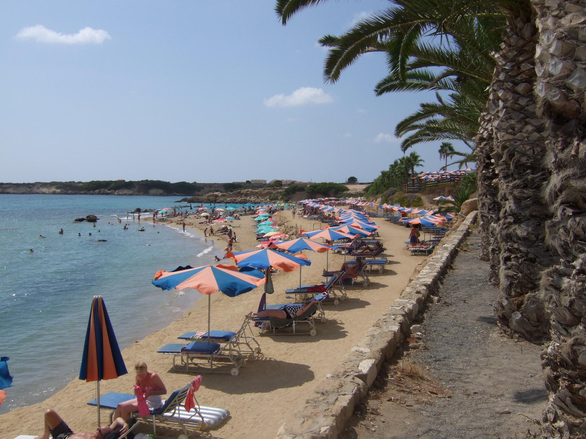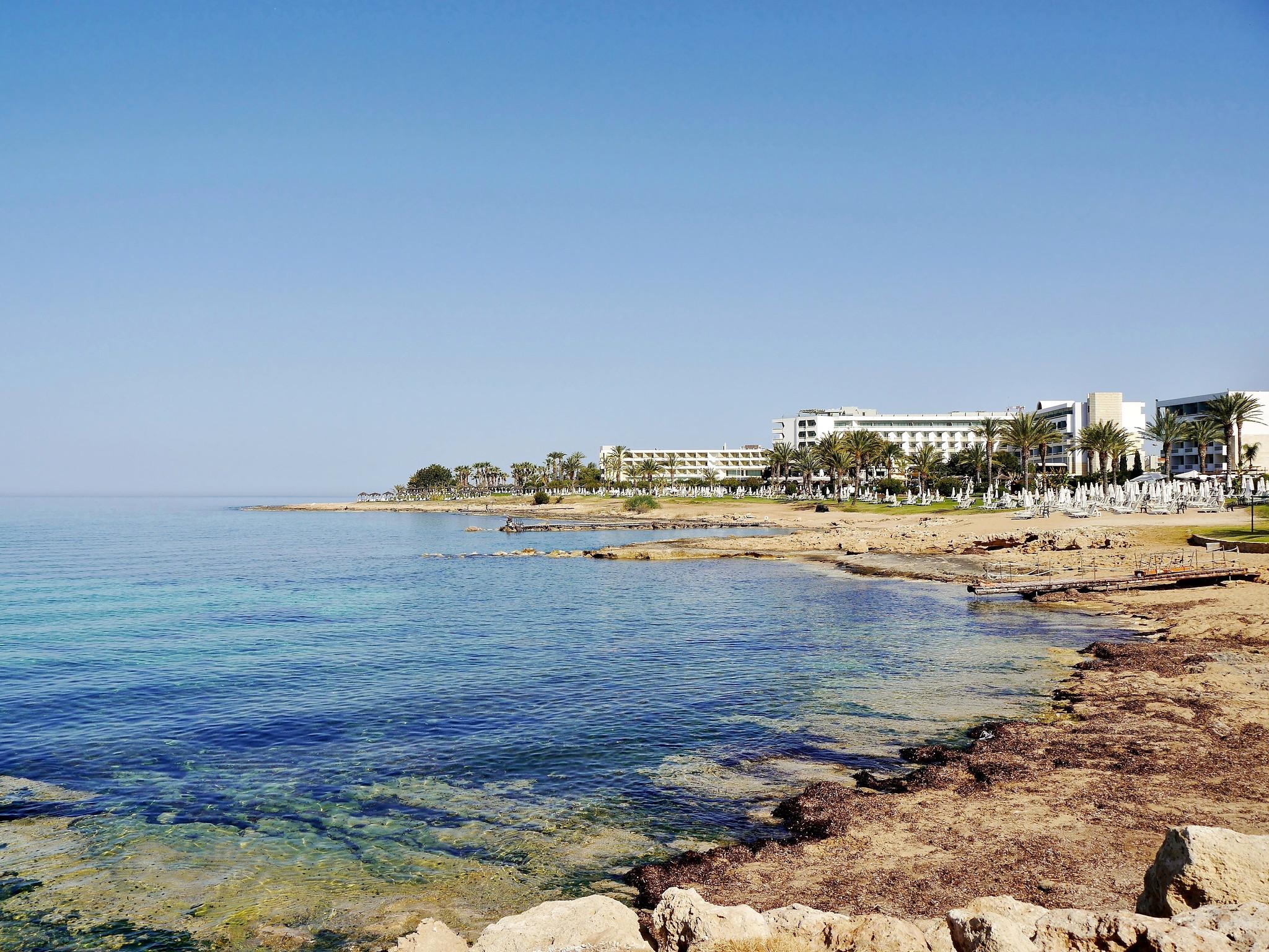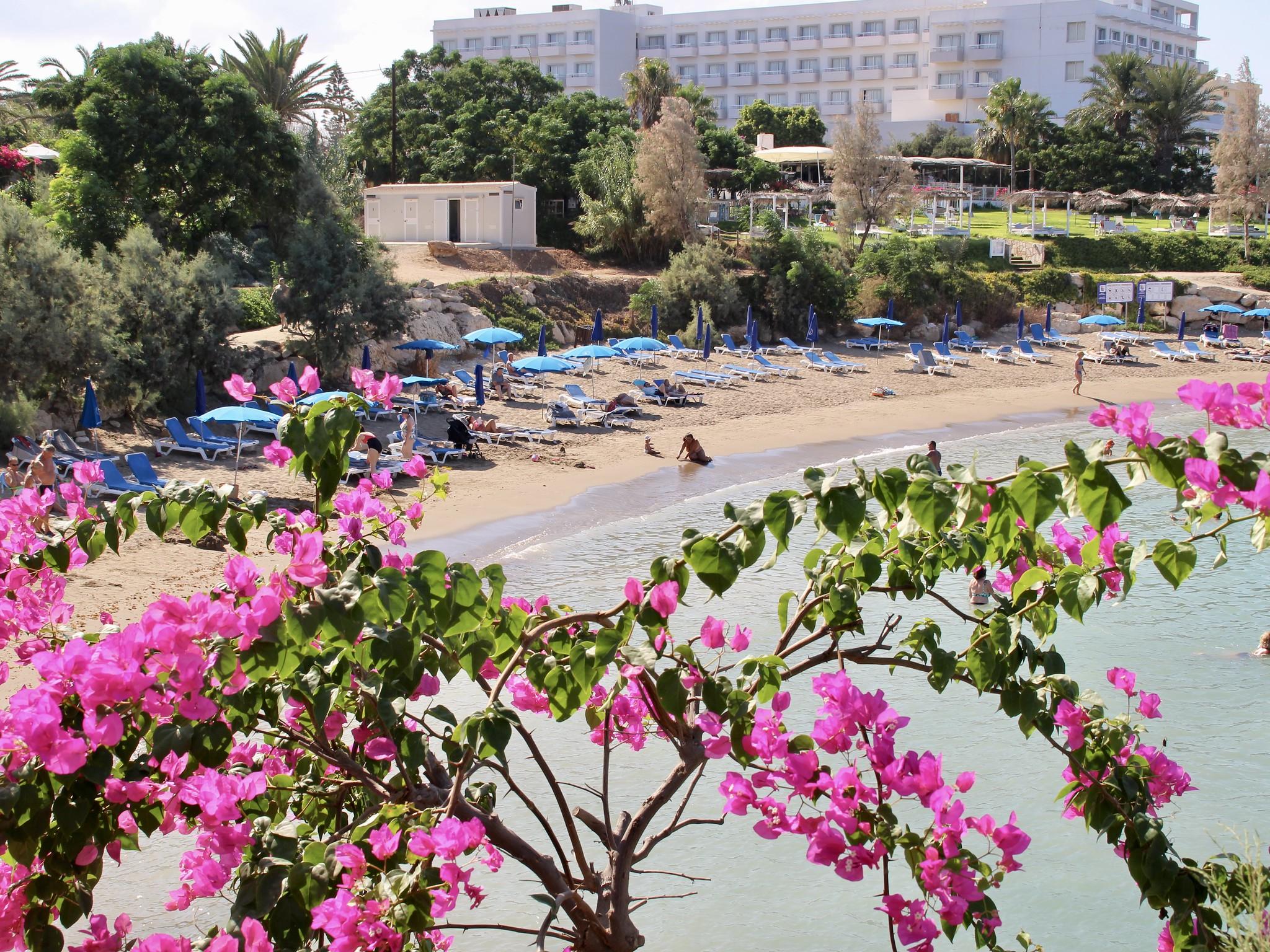 This small but cozy sandy beach belongs to the hotel of the same name, located in Peyia. Here, you'll find fine golden sand and clear water, creating a very comfortable atmosphere. The breakwaters ensure almost no waves, making it ideal for those who have come here to relax with young children.