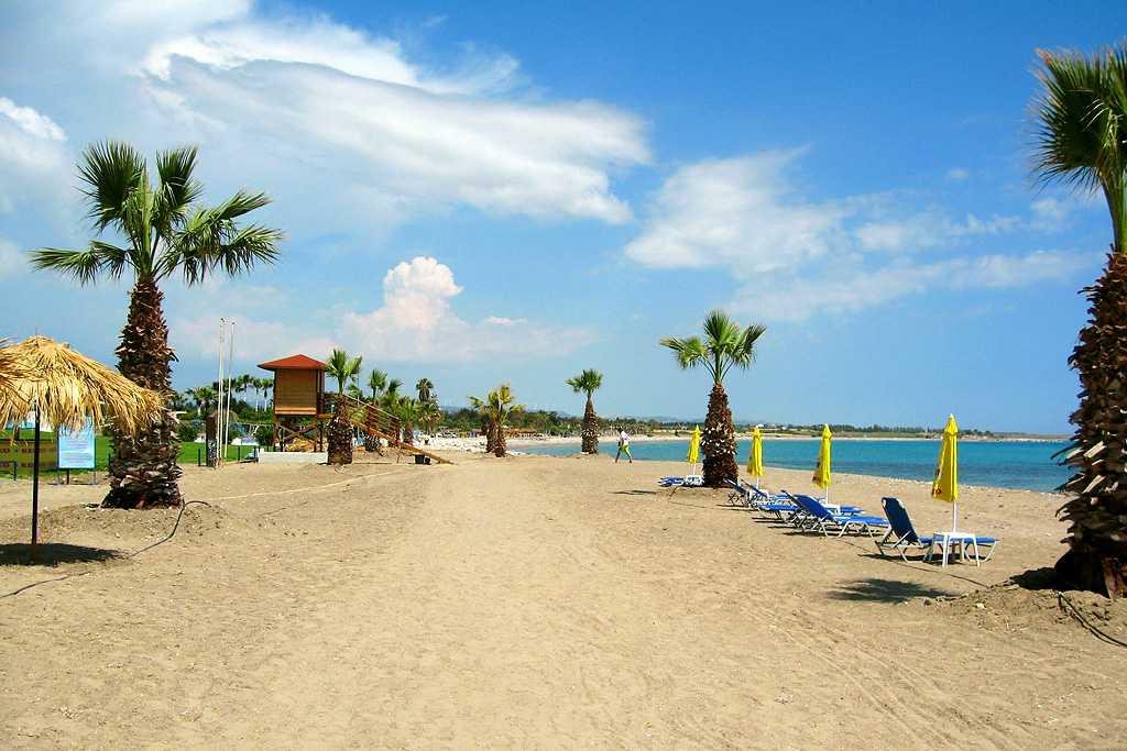 Geroskipou Beach has everything you need for a comfortable vacation, including beach equipment rentals, changing cabins, showers, and toilets. There are also water sports activities available. Additionally, there are volleyball, tennis, and football courts. So, even with teenagers, you can have a great time here.
