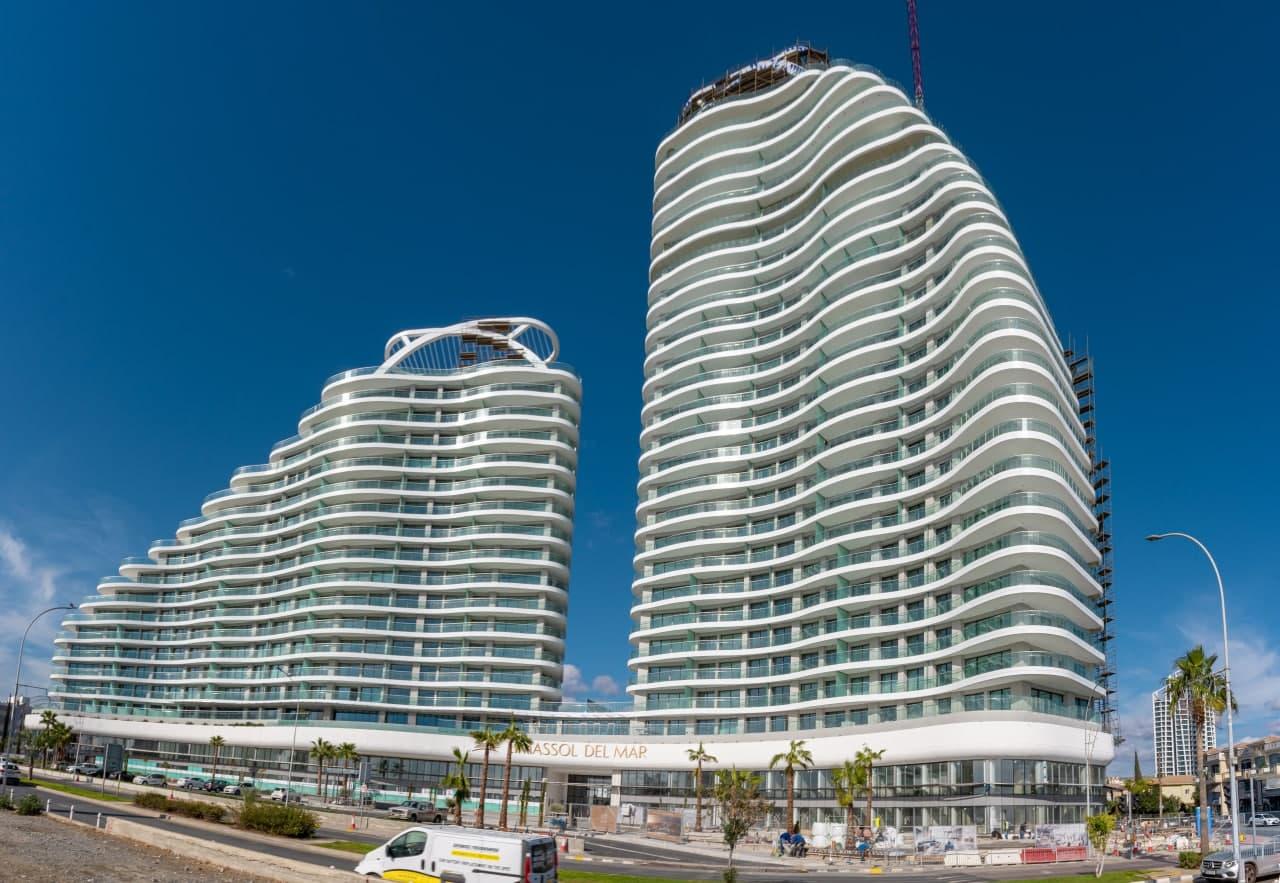 The impressive Limassol Del Mar complex, whose profile is reminiscent of a sailing yacht, adorns the Limassol seafront with the elegance of its architecture. It consists of two buildings with a maximum height of 107 metres, whose façade line stretches along the coast for more than 170 metres. Built by the Zavos Group and Leptos Estates, well known in Cyprus, Del Mar has become a bright new star on the island's residential property scene with its flowing, sinuous facades and cascading slopes. The luxurious suites are named after the most famous gemstones and furnished by the renowned furniture studio Gianfranco Ferre Home. The suites feature a modern classic design in light colours and the latest home technology, while the spacious terraces offer magnificent panoramic views of the Mediterranean Sea. Limassol Del Mar offers its residents 5-star service and state-of-the-art facilities, including: